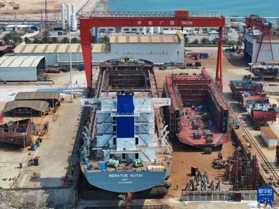 中國船舶集團廣西造船有限公司船舶建造現(xiàn)場(3月20日攝,無人機照片)。