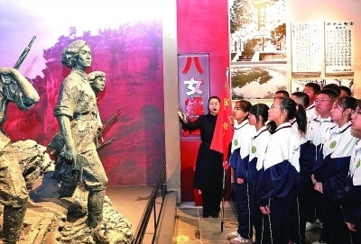 4月3日,遼寧省本溪市本溪滿族自治縣抗聯(lián)中學(xué)的學(xué)生在東北抗聯(lián)史實(shí)陳列館參觀。新華社記者 李鋼攝