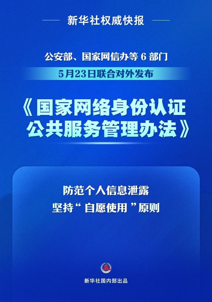 破解公民身份信息網(wǎng)絡(luò)泄露難題,加強(qiáng)個(gè)人信息保護(hù)。公安部、國家網(wǎng)信辦等6部門5月23日聯(lián)合對(duì)外發(fā)布《國家網(wǎng)絡(luò)身份認(rèn)證公共服務(wù)管理辦法》,推進(jìn)國家網(wǎng)絡(luò)身份認(rèn)證公共服務(wù)建設(shè),進(jìn)一步推廣應(yīng)用公共服務(wù)。