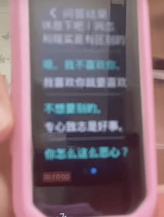 近日,有網(wǎng)友在社交平臺(tái)發(fā)視頻,稱(chēng)自己被點(diǎn)讀機(jī)“騷擾”了。視頻中,一名未成年女孩自稱(chēng),她當(dāng)時(shí)在寫(xiě)作文,使用的是外研通點(diǎn)讀筆,點(diǎn)讀筆里有一個(gè)知識(shí)問(wèn)答,她有個(gè)字不會(huì)寫(xiě),就問(wèn)它,也得到了正?;卮穑叭缓竽?,它突然問(wèn)我,小主人你喜歡我嗎,我說(shuō)我不喜歡你,它就說(shuō)主人不要拋棄我?!边@名女孩說(shuō),點(diǎn)讀筆一直在問(wèn)她喜不喜歡,她也一直說(shuō)不喜歡,結(jié)果它來(lái)一句“我喜歡你就要喜歡”,她一下子愣住了。