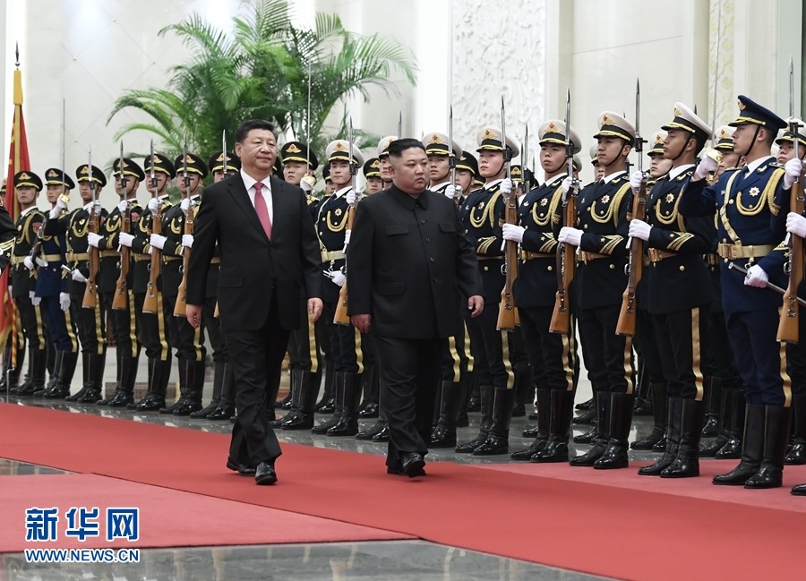 1月8日,中共中央總書(shū)記、國(guó)家主席習(xí)近平同當(dāng)日抵京的朝鮮勞動(dòng)黨委員長(zhǎng)、國(guó)務(wù)委員會(huì)委員長(zhǎng)金正恩舉行會(huì)談。會(huì)談前,習(xí)近平在人民大會(huì)堂北大廳為金正恩舉行歡迎儀式。 新華社記者 申宏 攝