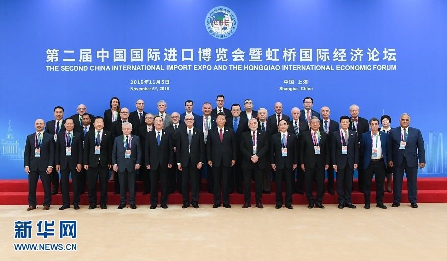 開幕式前,習近平同外方領導人集體合影,并親切會見世界500強企業(yè)家代表、出席“70年中國發(fā)展與人類命運共同體”論壇外方智庫媒體代表、出席世貿組織小型部長會議外方部長和代表團團長。