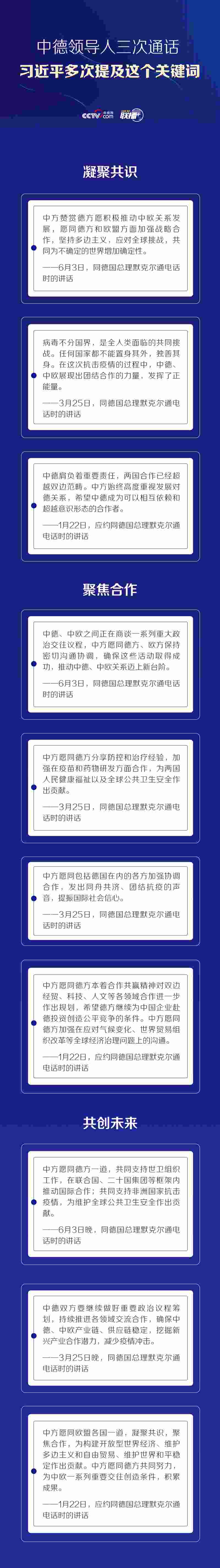 聯(lián)播+6月3日晚,習(xí)近平主席同德國(guó)總理默克爾通電話。這是自新冠肺炎疫情暴發(fā)以來,雙方第三次通話。習(xí)近平強(qiáng)調(diào),近日中德“快捷通道”正式啟動(dòng),這有利于幫助兩國(guó)有需求的企業(yè)加快復(fù)工復(fù)產(chǎn),維護(hù)國(guó)際產(chǎn)業(yè)鏈、供應(yīng)鏈穩(wěn)定。