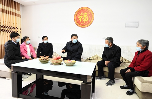 4月21日,習(xí)近平在安康市平利縣老縣鎮(zhèn)錦屏社區(qū),同搬遷戶汪顯平一家圍坐在一起拉家常。