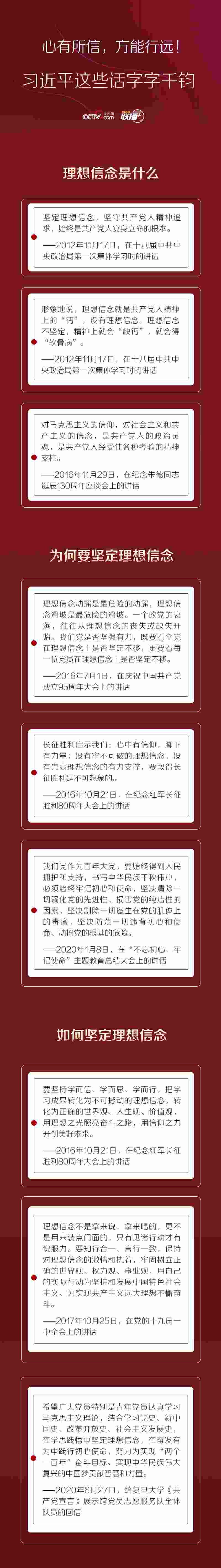 聯(lián)播+“心有所信,方能行遠(yuǎn)。面向未來,走好新時(shí)代的長征路,我們更需要堅(jiān)定理想信念、矢志拼搏奮斗?!苯?,習(xí)近平總書記給復(fù)旦大學(xué)《共產(chǎn)黨宣言》展示館黨員志愿服務(wù)隊(duì)全體隊(duì)員回信。