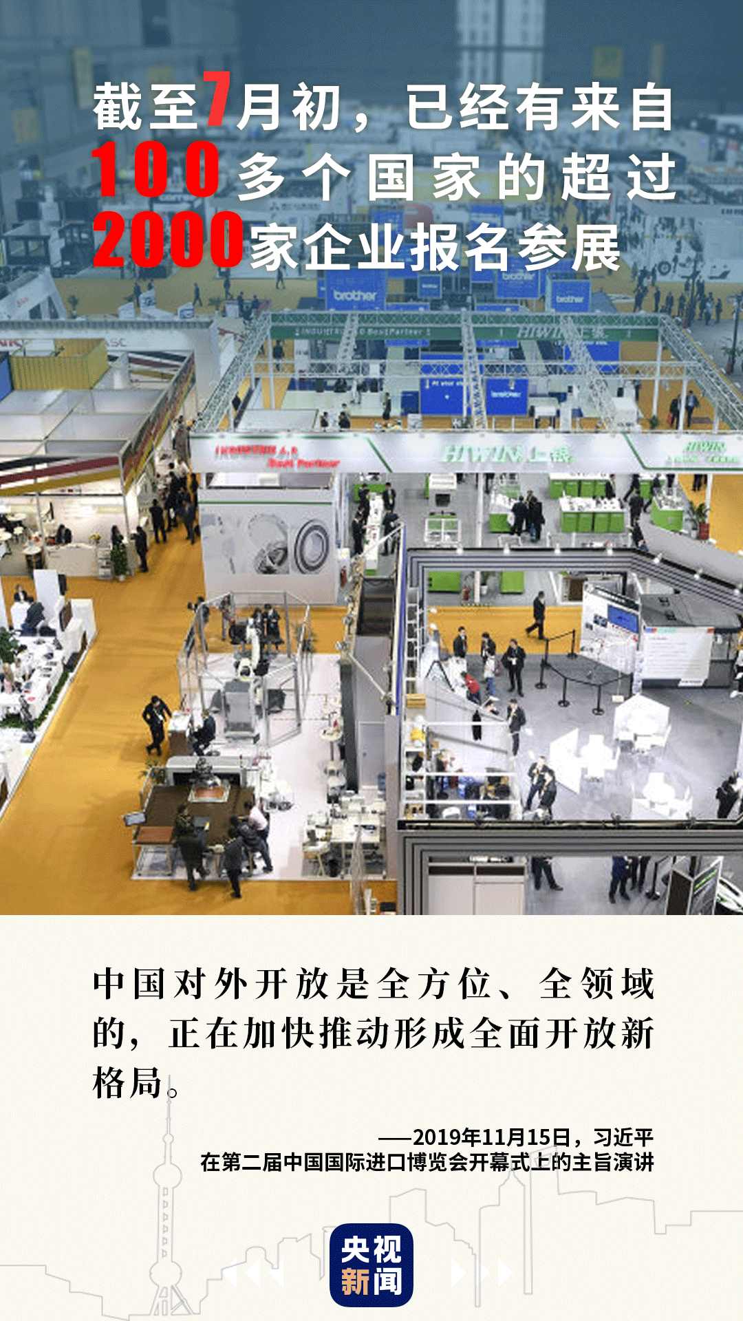 100天后,第三屆進(jìn)博會(huì)將如期舉行。中國(guó)機(jī)遇、世界共享,未來可期。