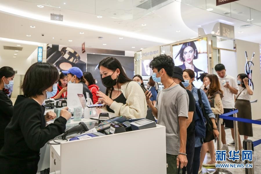 10月27日,消費(fèi)者在海南省??谑腥赵聫V場免稅店選購商品。新華社記者 張麗蕓 攝