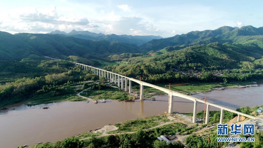 這是2020年7月15日拍攝的中老鐵路班納漢湄公河特大橋(無人機照片)。新華社發(fā)(中鐵八局供圖)