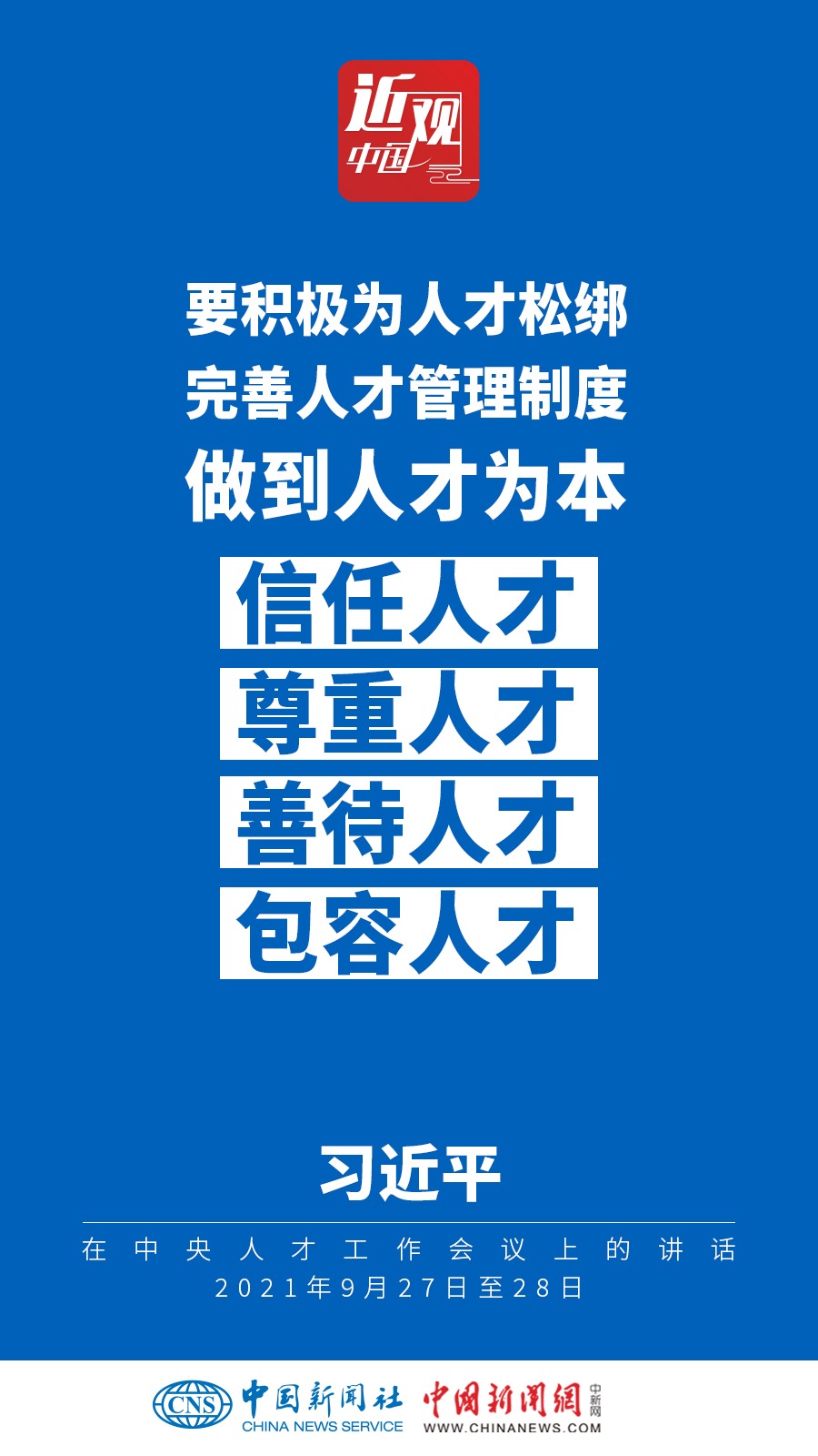 中央人才工作會(huì)議9月27日至28日在北京召開。中共中央總書記、國(guó)家主席、中央軍委主席習(xí)近平出席會(huì)議并發(fā)表重要講話。他強(qiáng)調(diào)——