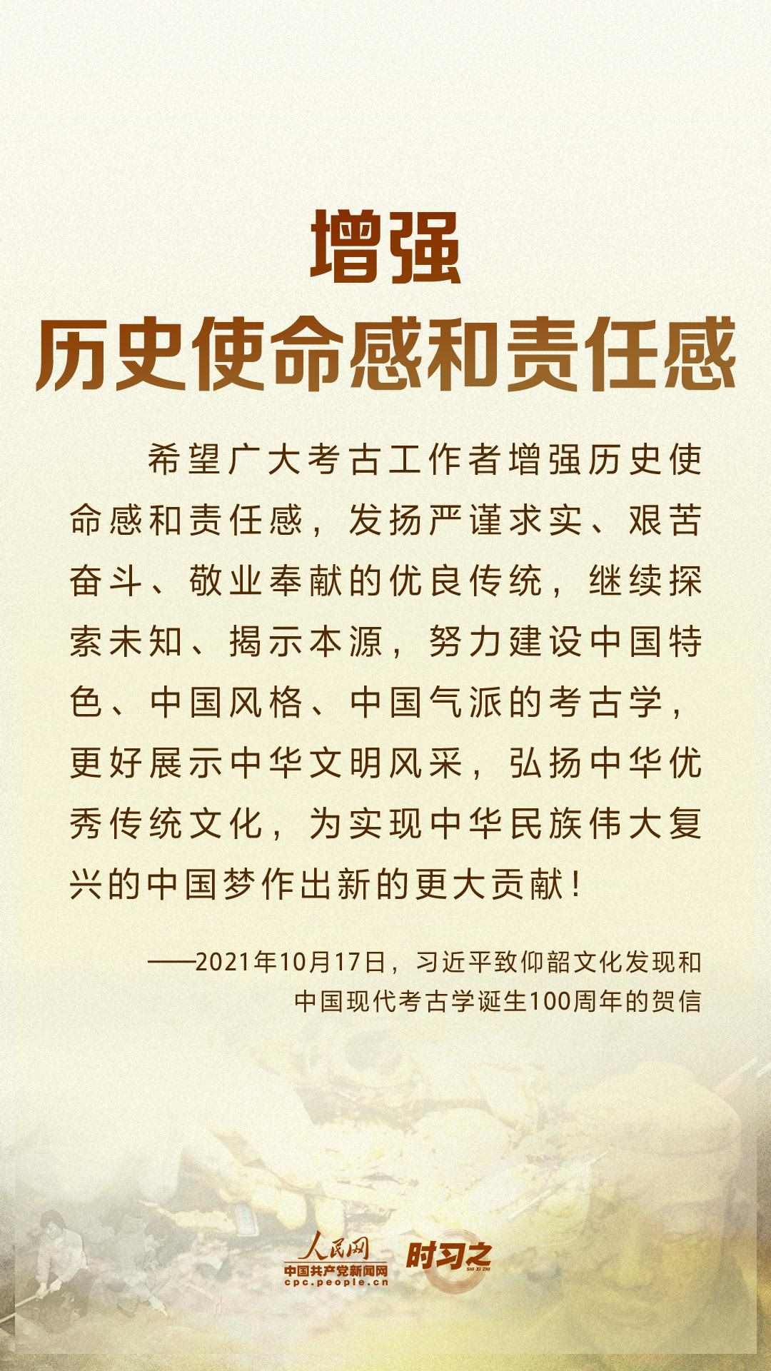 10月17日,在仰韶文化發(fā)現(xiàn)和中國現(xiàn)代考古學(xué)誕生100周年之際,中共中央總書記、國家主席、中央軍委主席習(xí)近平發(fā)來賀信,代表黨中央向全國考古工作者致以熱烈的祝賀和誠摯的問候。
