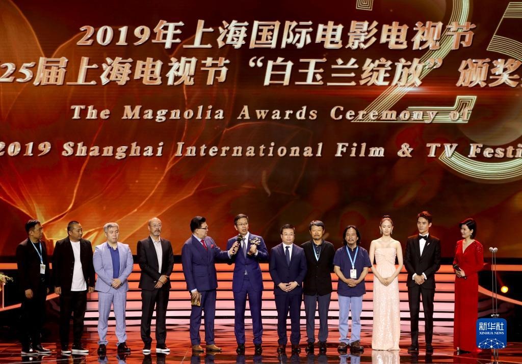 2019年6月14日,第25屆上海電視節(jié)落下帷幕,獲得“最佳中國電視劇”的《大江大河》主創(chuàng)上臺領(lǐng)獎。新華社記者 劉穎/攝