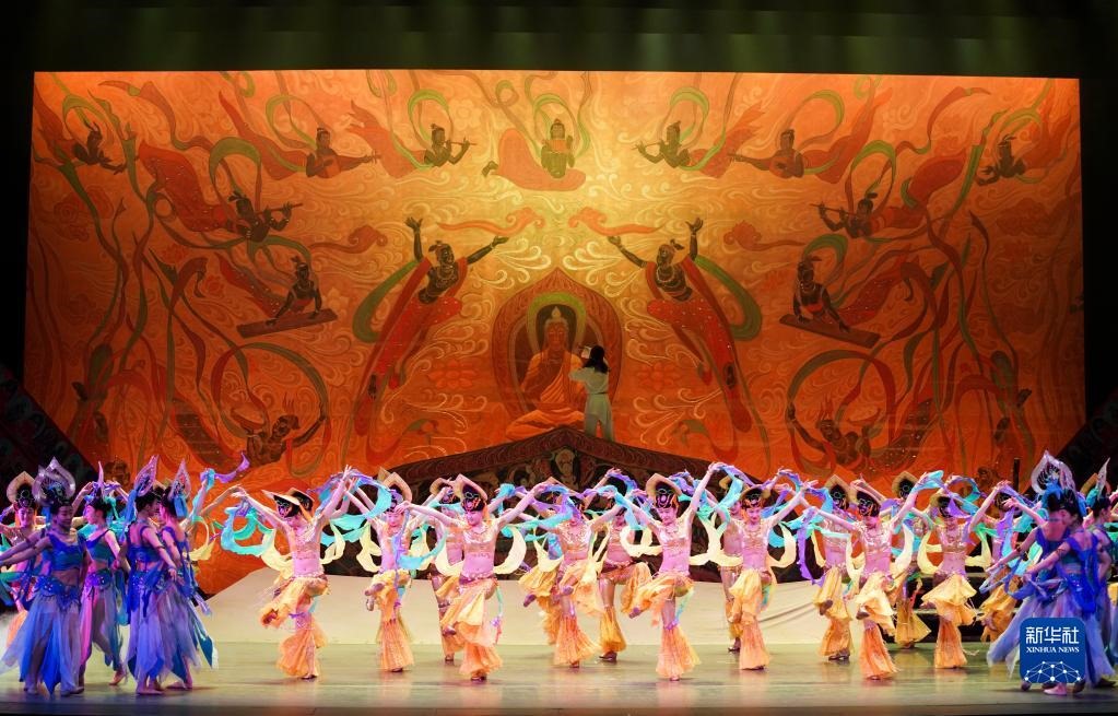 2020年1月9日,在美國紐約林肯劇院,演員在媒體預(yù)演上表演《大夢敦煌》片段。新華社記者 王迎/攝