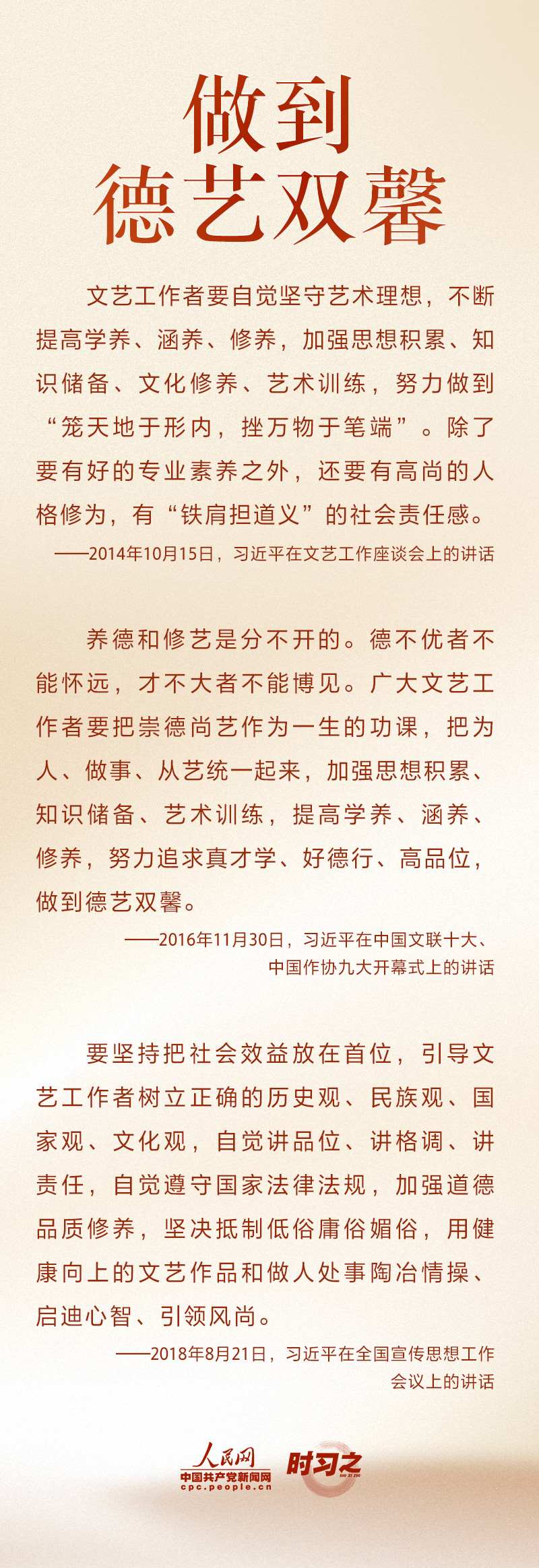 文運同國運相牽,文脈同國脈相連。新時代文藝工作者承擔(dān)著記錄新時代、書寫新時代、謳歌新時代的重大使命。“文藝是鑄造靈魂的工程,文藝工作者是靈魂的工程師?!秉h的十八大以來,習(xí)近平不斷激勵文藝工作者不辜負時代召喚、不辜負人民期待,以德服人、以文化人。