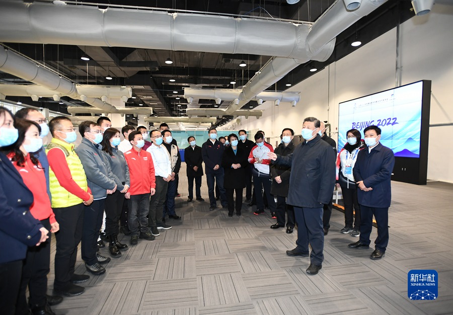 1月4日,中共中央總書記、國家主席、中央軍委主席習(xí)近平在北京考察2022年冬奧會(huì)、冬殘奧會(huì)籌辦備賽工作。這是4日下午,習(xí)近平在二七廠冰雪項(xiàng)目訓(xùn)練基地速滑館,向參訓(xùn)運(yùn)動(dòng)員、教練員表示慰問。新華社記者 謝環(huán)馳 攝