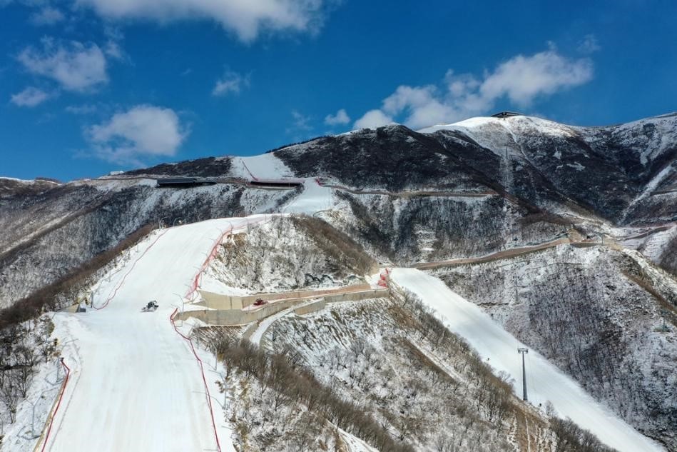 歷時1277天建設(shè),國家高山滑雪中心順利完工。7條雪道猶如白色瀑布由山頂向山谷蜿蜒“流淌”,最長賽道全長約3千米,垂直落差大約900米。這是國內(nèi)最高等級的高山滑雪賽道、國內(nèi)唯一符合冬奧會標(biāo)準(zhǔn)的賽道,也是世界上難度最大的高山滑雪賽道之一。