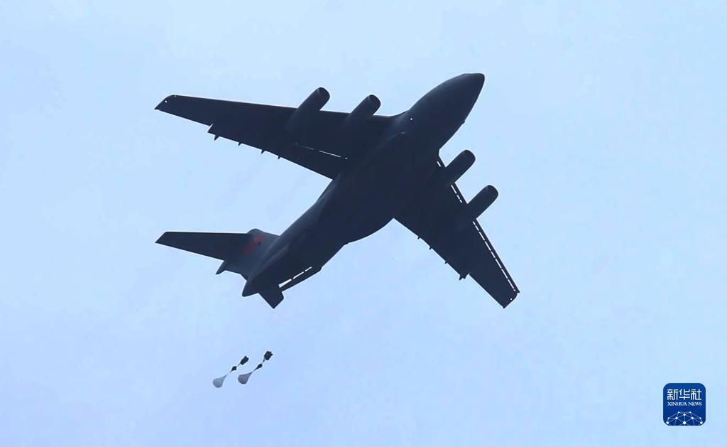 中國空軍大型運(yùn)輸機(jī)運(yùn)-20與空降兵部隊(duì)聯(lián)合開展空降空投訓(xùn)練(資料照片)。新華社發(fā)