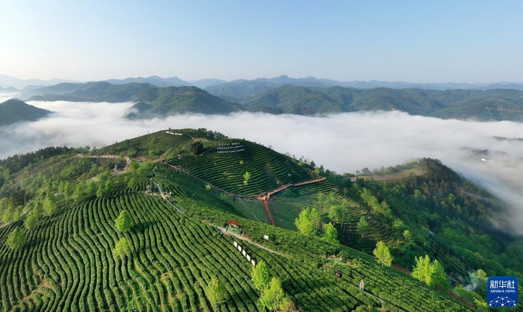 陜西省安康市平利縣老縣鎮(zhèn)蔣家坪茶園(2022年4月5日攝,無(wú)人機(jī)照片)。新華社記者 陶明 攝