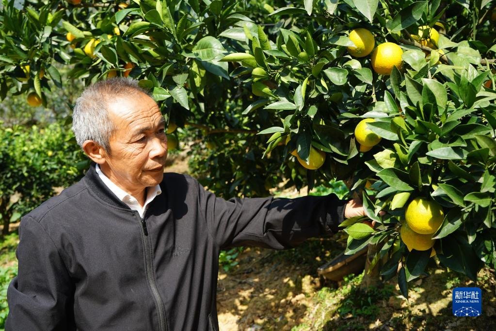 10月16日,全國脫貧攻堅(jiān)楷模、重慶市巫山縣下莊村黨支部書記毛相林在自家柑橘園中查看柑橘長勢(shì)。新華社記者 李曉婷 攝