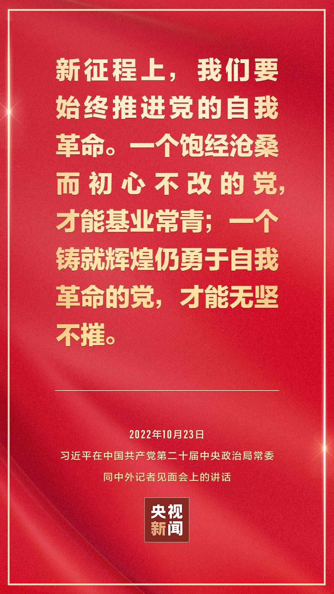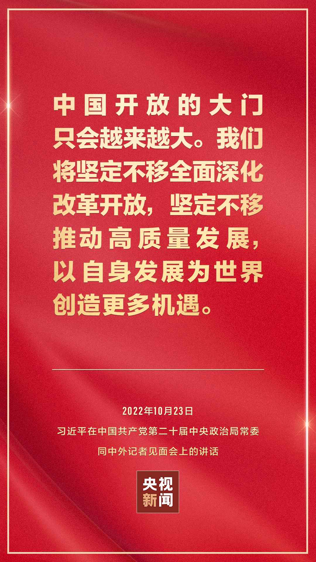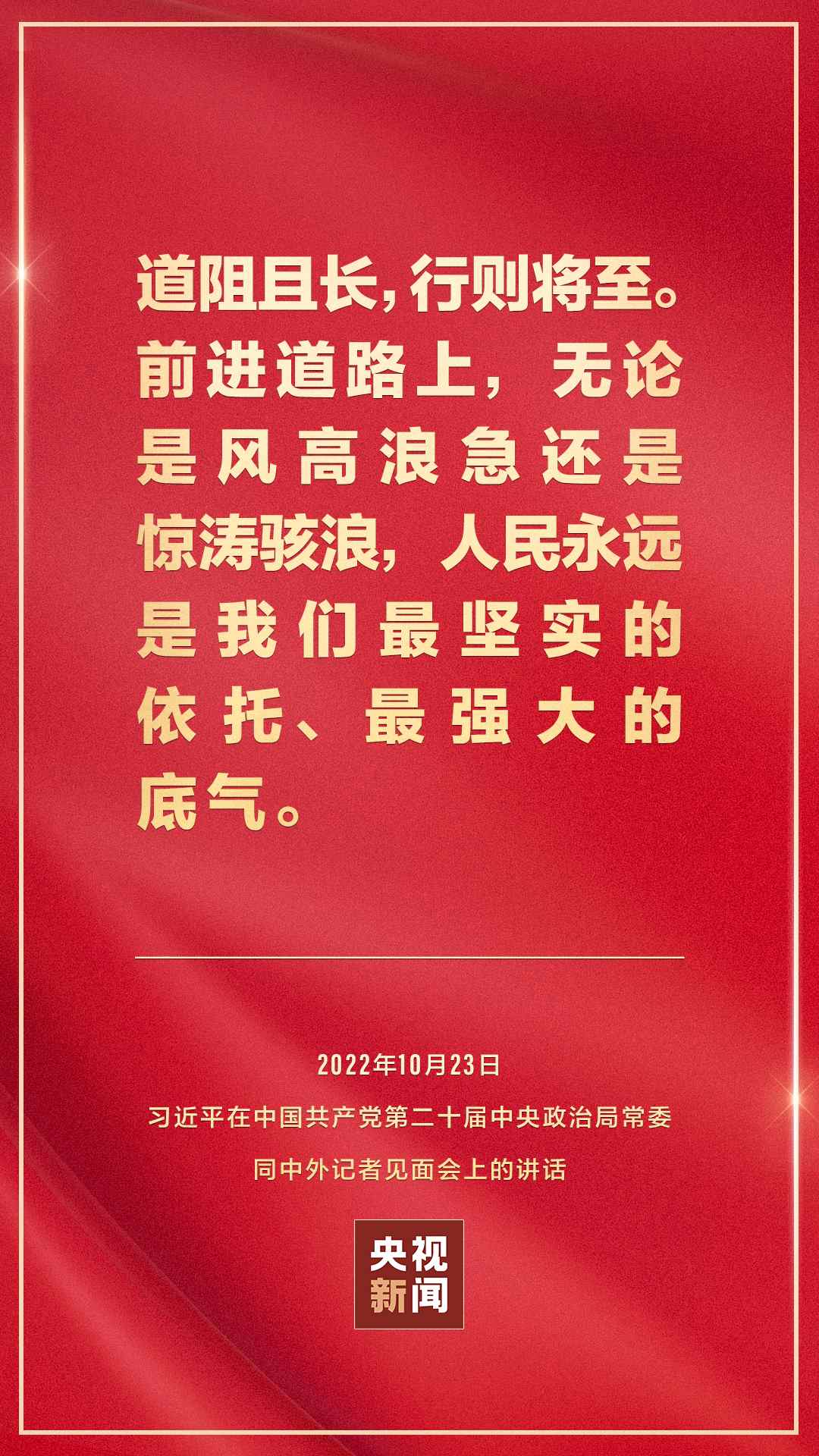 在中國共產(chǎn)黨第二十屆中央委員會第一次全體會議上當(dāng)選的中共中央總書記習(xí)近平和中共中央政治局常委李強(qiáng)、趙樂際、王滬寧、蔡奇、丁薛祥、李希,23日中午在人民大會堂同采訪中共二十大的中外記者見面。習(xí)近平發(fā)表重要講話。