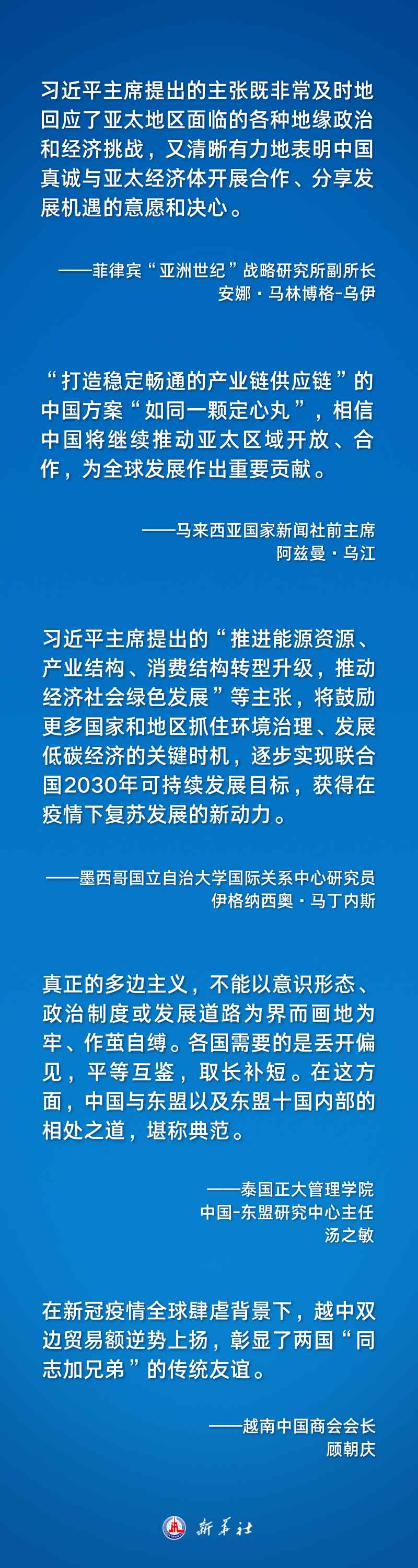 “和平是亞太地區(qū)各經(jīng)濟(jì)體實(shí)現(xiàn)發(fā)展和繁榮的首要因素,習(xí)近平主席的論述正是強(qiáng)調(diào)了這一點(diǎn),也明確了亞太地區(qū)加強(qiáng)合作與維護(hù)多邊主義的重要性?!卑材取ゑR林博格-烏伊說。