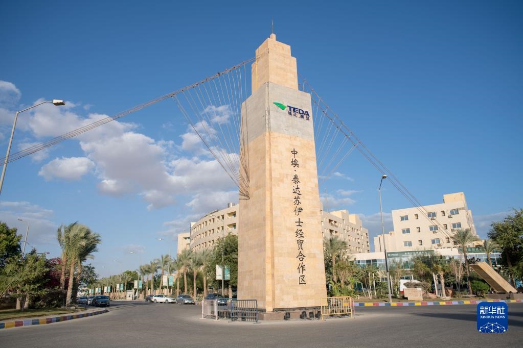 這是2021年1月14日在埃及蘇赫奈泉拍攝的中埃·泰達(dá)蘇伊士經(jīng)貿(mào)合作區(qū)大門。新華社記者 鄔惠我 攝