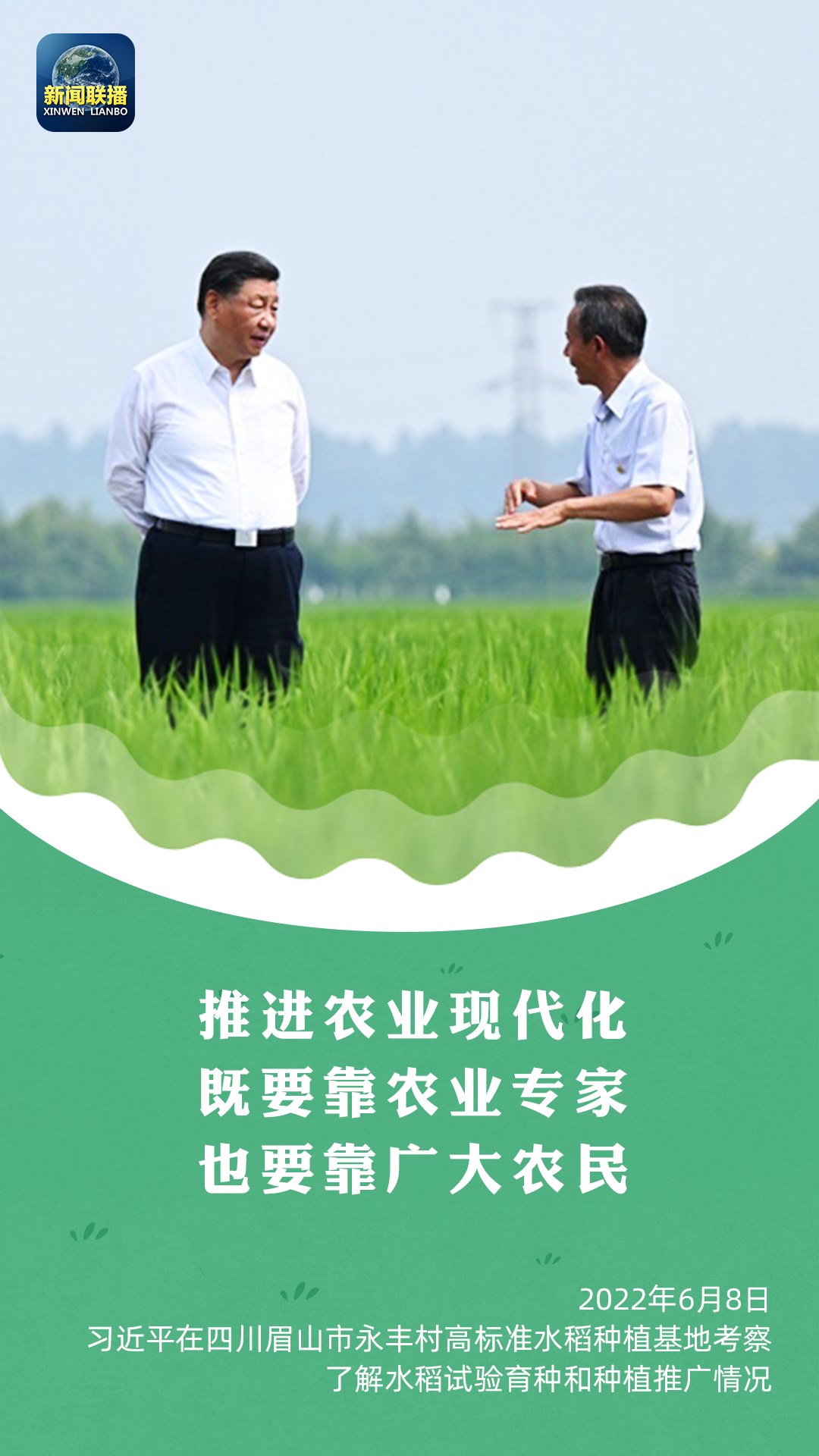今年6月8日,習近平總書記在四川永豐村考察,走進稻田察看秧苗長勢,向身邊的農(nóng)業(yè)專家、四川農(nóng)業(yè)大學教授馬均仔細詢問著秧苗的情況。