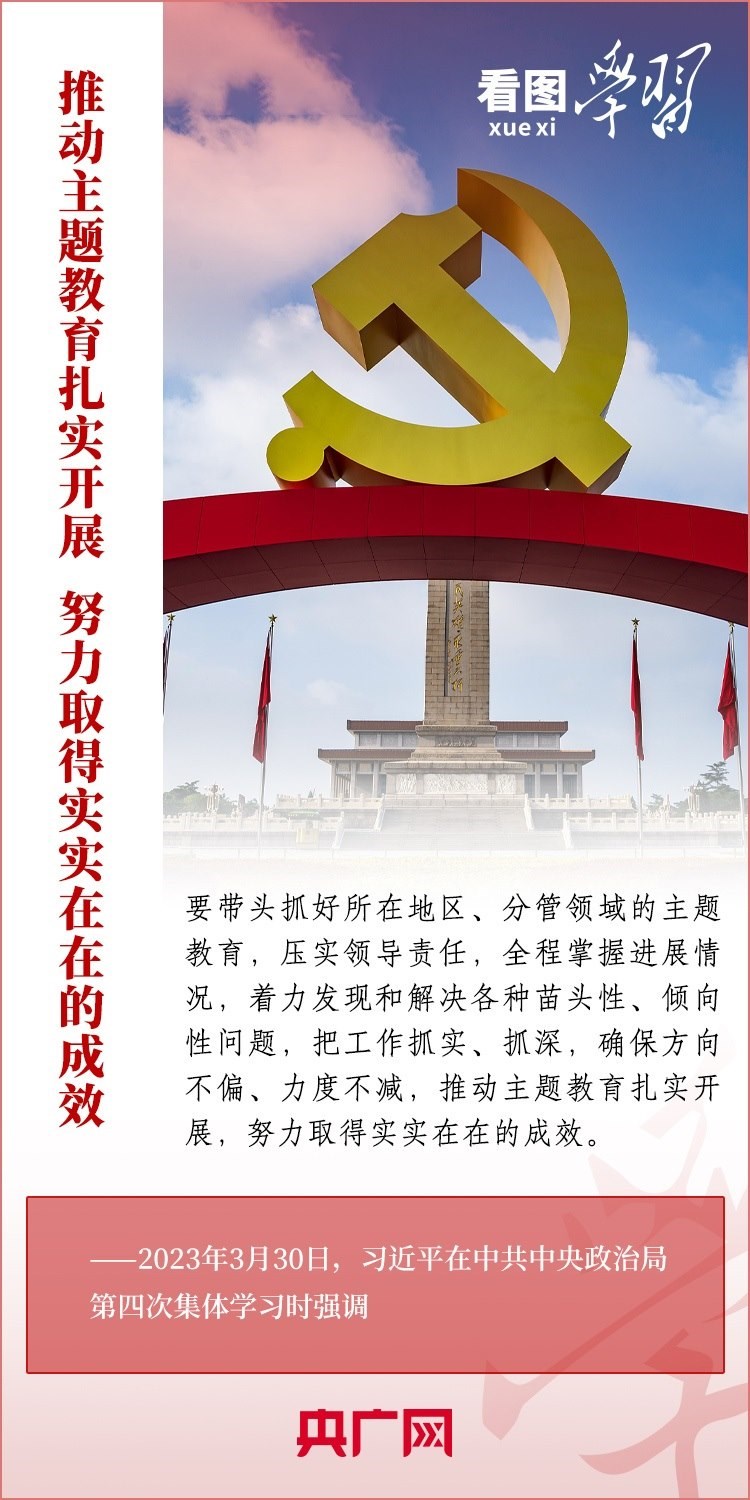 3月30日,中共中央政治局就學(xué)習(xí)貫徹習(xí)近平新時代中國特色社會主義思想進(jìn)行第四次集體學(xué)習(xí)。會議決定,從今年4月開始,在全黨自上而下分兩批開展學(xué)習(xí)貫徹習(xí)近平新時代中國特色社會主義思想主題教育。習(xí)近平總書記強(qiáng)調(diào),舉行這次集體學(xué)習(xí),目的是發(fā)揮示范作用,推動全黨在主題教育中深入學(xué)習(xí)貫徹新時代中國特色社會主義思想,打牢思想理論基礎(chǔ)。今天,一起來學(xué)習(xí)!