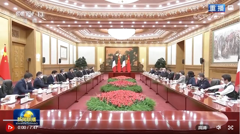 馬克龍表示,我對3年多前訪華情景記憶猶新,非常高興再次訪華,同習(xí)近平主席共同探討進(jìn)一步提升法中全面戰(zhàn)略伙伴關(guān)系。我完全贊同習(xí)近平主席對法中關(guān)系的積極評價以及就發(fā)展雙邊關(guān)系提出的重要建議。明年法中將共同慶祝建交60周年。60年來,法中關(guān)系保持了穩(wěn)定健康發(fā)展。雖然法中兩國發(fā)展模式不同,但雙方相互尊重,坦誠交流,各領(lǐng)域合作實(shí)現(xiàn)了互利互惠,同時在合作應(yīng)對當(dāng)今世界面臨的全球性挑戰(zhàn)方面取得重要進(jìn)展。法方尊重并奉行一個中國政策。我此次率龐大代表團(tuán)訪華,就是希望同中方加強(qiáng)合作,促進(jìn)人文交流。法方祝賀中方成功舉辦昆明-蒙特利爾《生物多樣性公約》第十五次締約方大會,希望繼續(xù)在氣候變化、糧食安全等問題上同中方密切溝通合作。中方將舉辦第三屆“一帶一路”國際合作高峰論壇,法方愿同中方就此開展合作。法方贊賞中方始終遵守聯(lián)合國憲章宗旨,為解決國際地區(qū)熱點(diǎn)問題發(fā)揮積極作用,期待同中方密切溝通協(xié)作,努力實(shí)現(xiàn)世界的持久和平與穩(wěn)定。