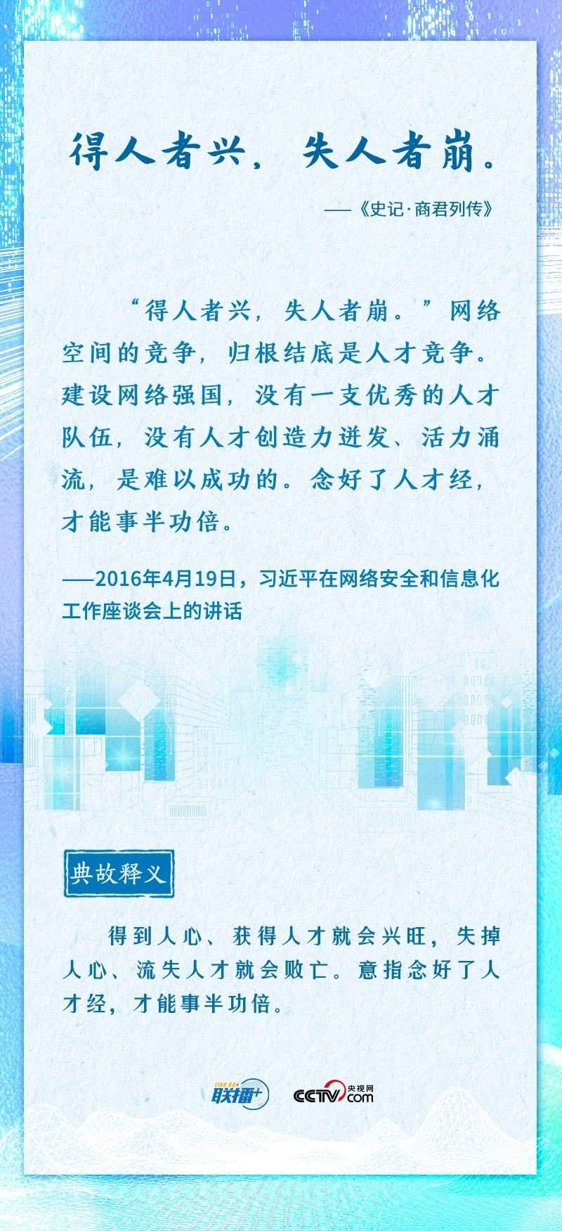 值此網(wǎng)絡(luò)安全和信息化工作座談會召開七周年之際,央視網(wǎng)《聯(lián)播+》推出海報,邀您一起重溫總書記的經(jīng)典論述。