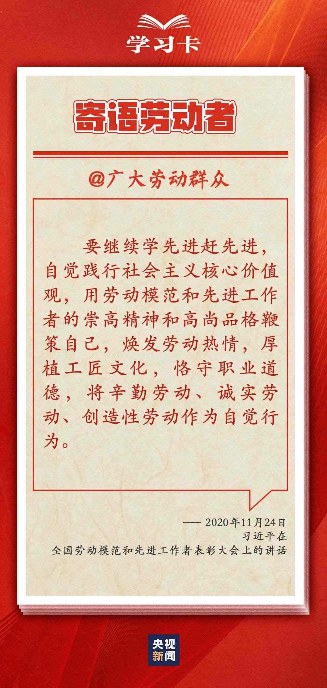 “社會(huì)主義是干出來的,新時(shí)代是奮斗出來的?!倍嗄陙?,習(xí)近平總書記一直情系全國廣大勞動(dòng)者,多次強(qiáng)調(diào)無論時(shí)代條件如何變化,我們始終都要崇尚勞動(dòng)、尊重勞動(dòng)者。