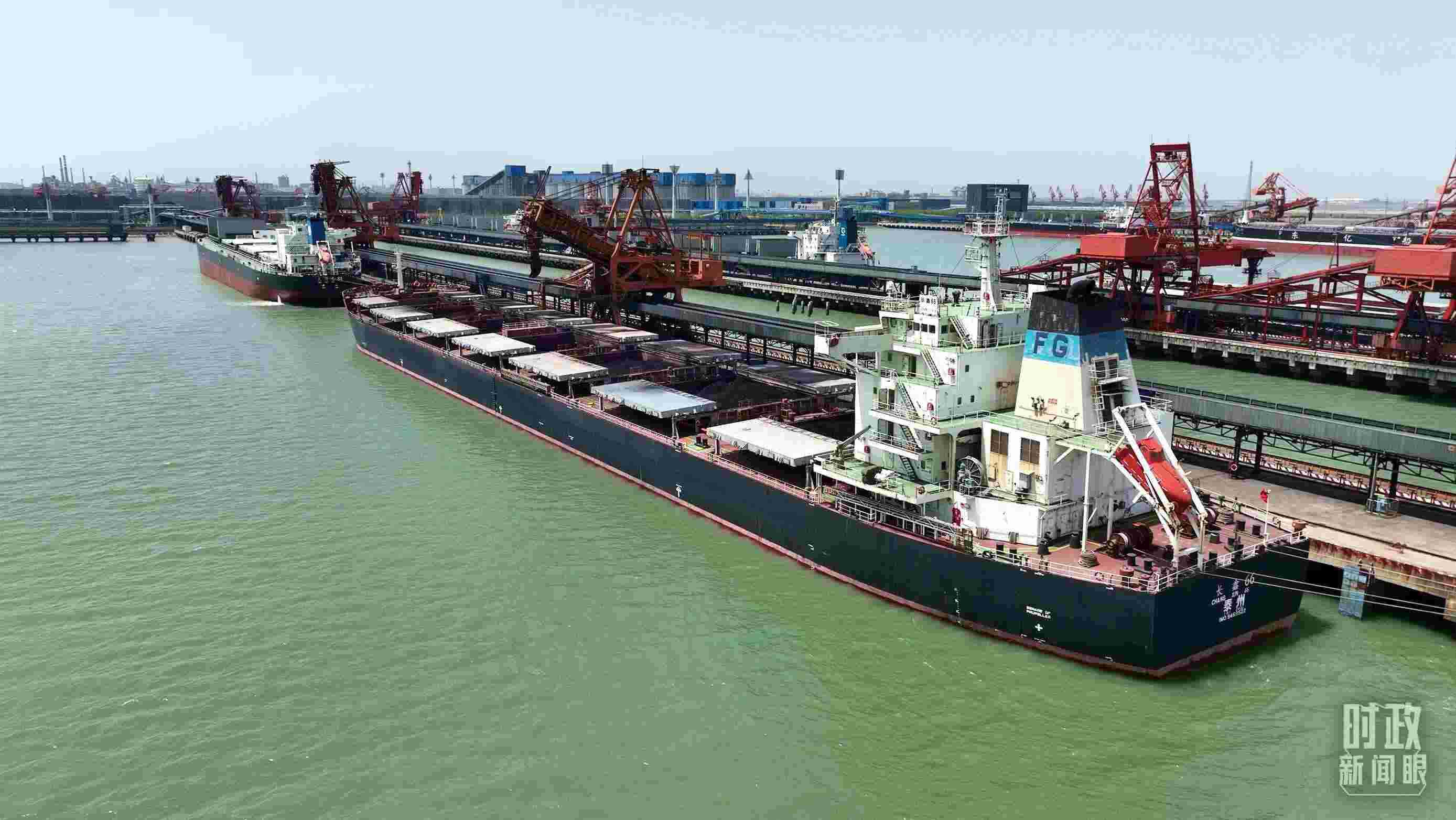 △停靠在黃驊港的神華518輪。(總臺央視記者張曉鵬拍攝)