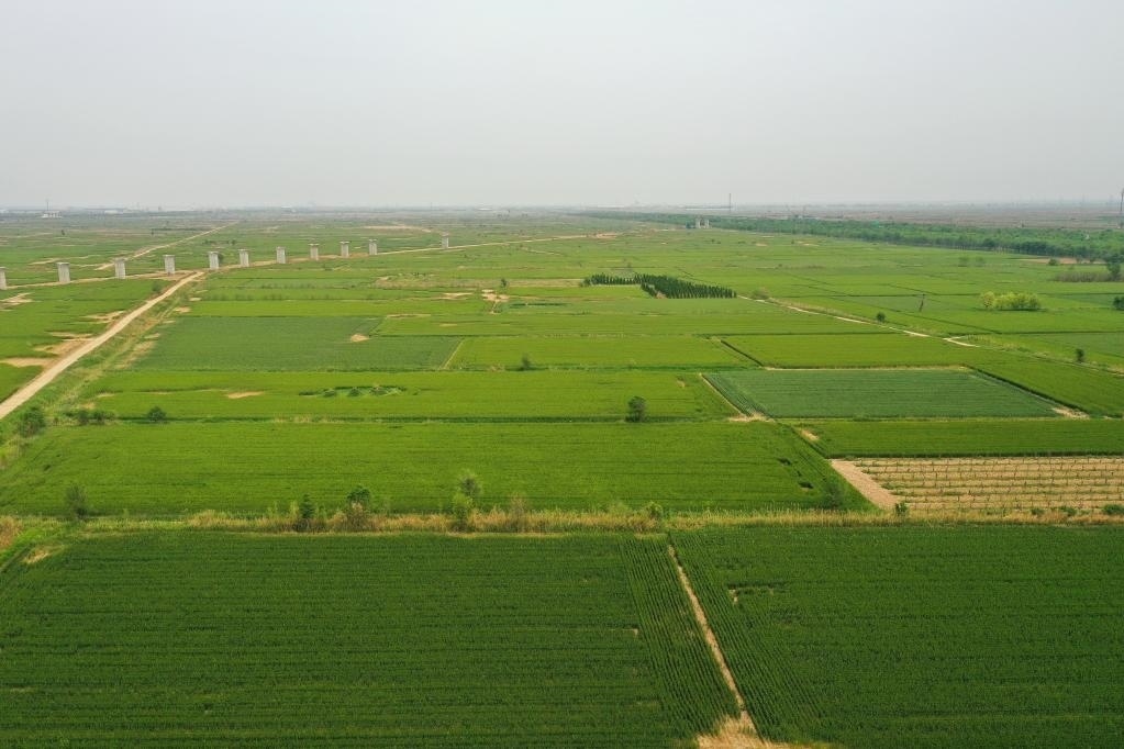 5月11日拍攝的黃驊市舊城鎮(zhèn)仙莊片區(qū)旱堿地麥田(無人機照片)。新華社記者 牟宇 攝
