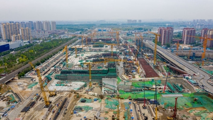 這是在北京市通州區(qū)拍攝的建設中的北京城市副中心站綜合交通樞紐(2023年4月23日攝,無人機照片)。新華社發(fā)(北京城建集團供圖)