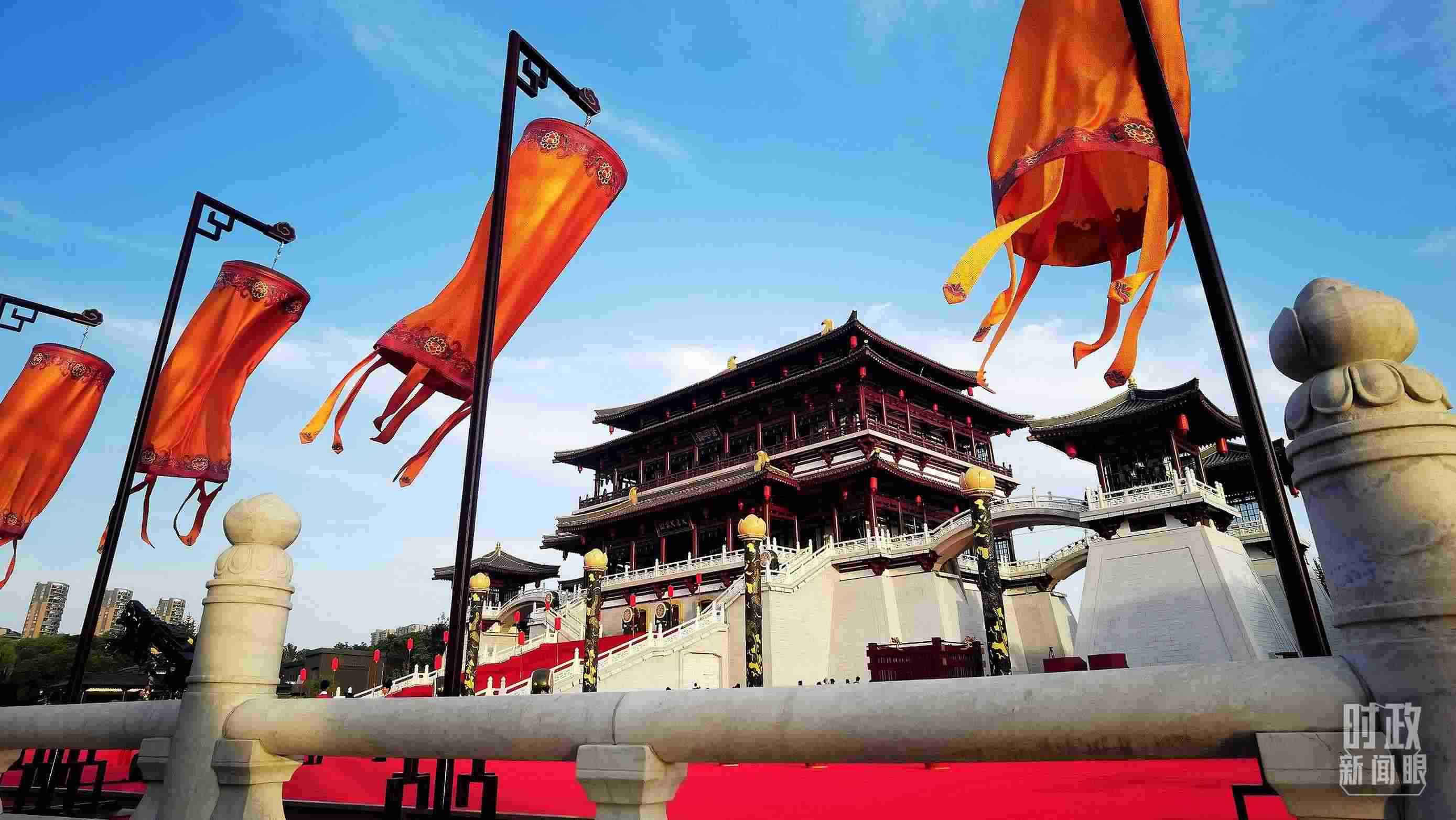 △紫云樓是大唐芙蓉園最主要的仿唐建筑群之一。18日晚的迎賓表演就是以紫云樓為背景。(總臺央視記者劉琦拍攝)