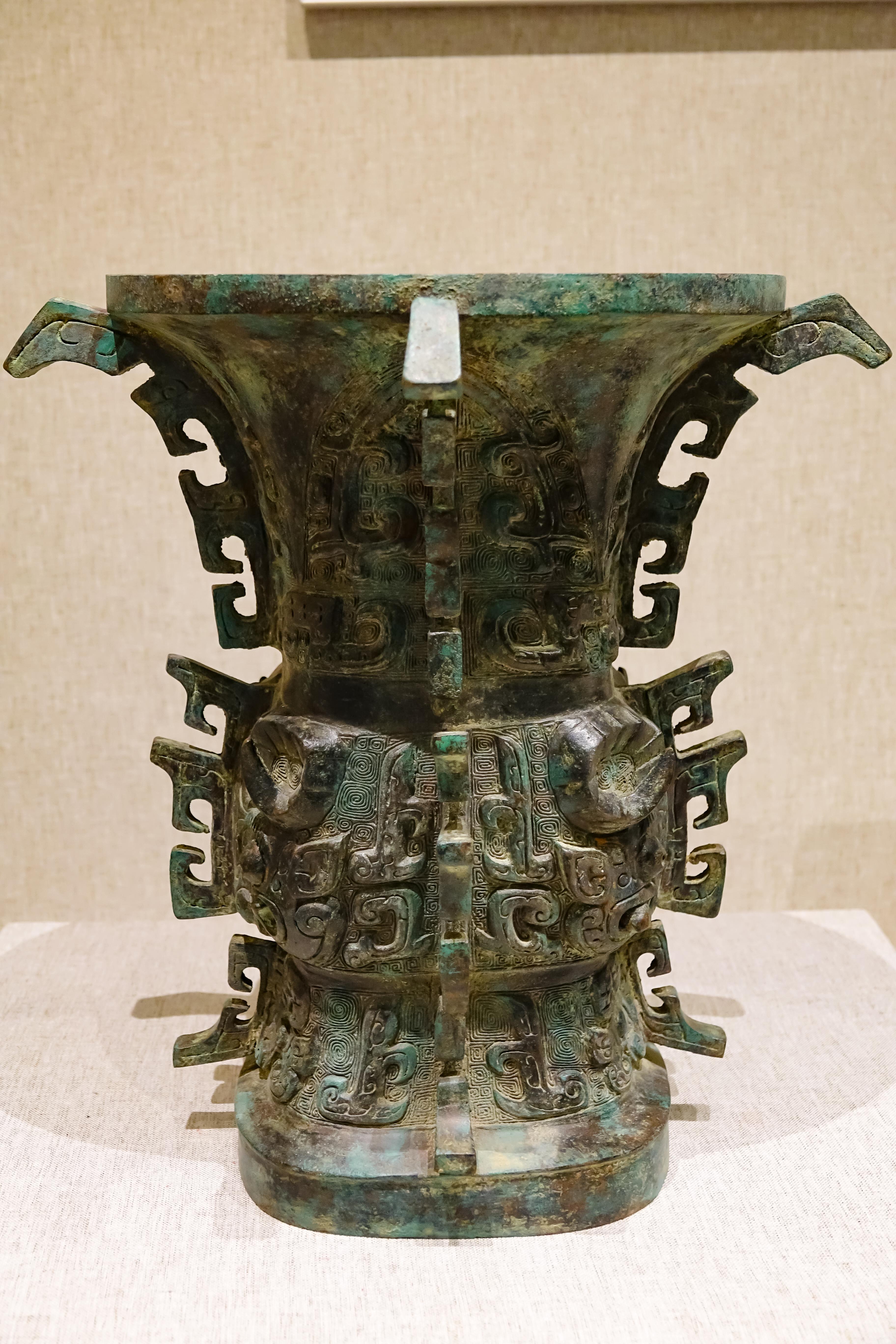 展廳內(nèi),一件造型渾厚、工藝精美的西周早期青銅器——“何尊”熠熠生輝。何尊1963年出土于陜西寶雞,內(nèi)底刻有銘文“宅茲中國(guó)”,是目前發(fā)現(xiàn)“中國(guó)”二字最早的實(shí)物記錄。2020年,習(xí)近平總書(shū)記在陜西考察時(shí)說(shuō),“中國(guó)”二字最早見(jiàn)于在陜西出土的青銅器何尊。