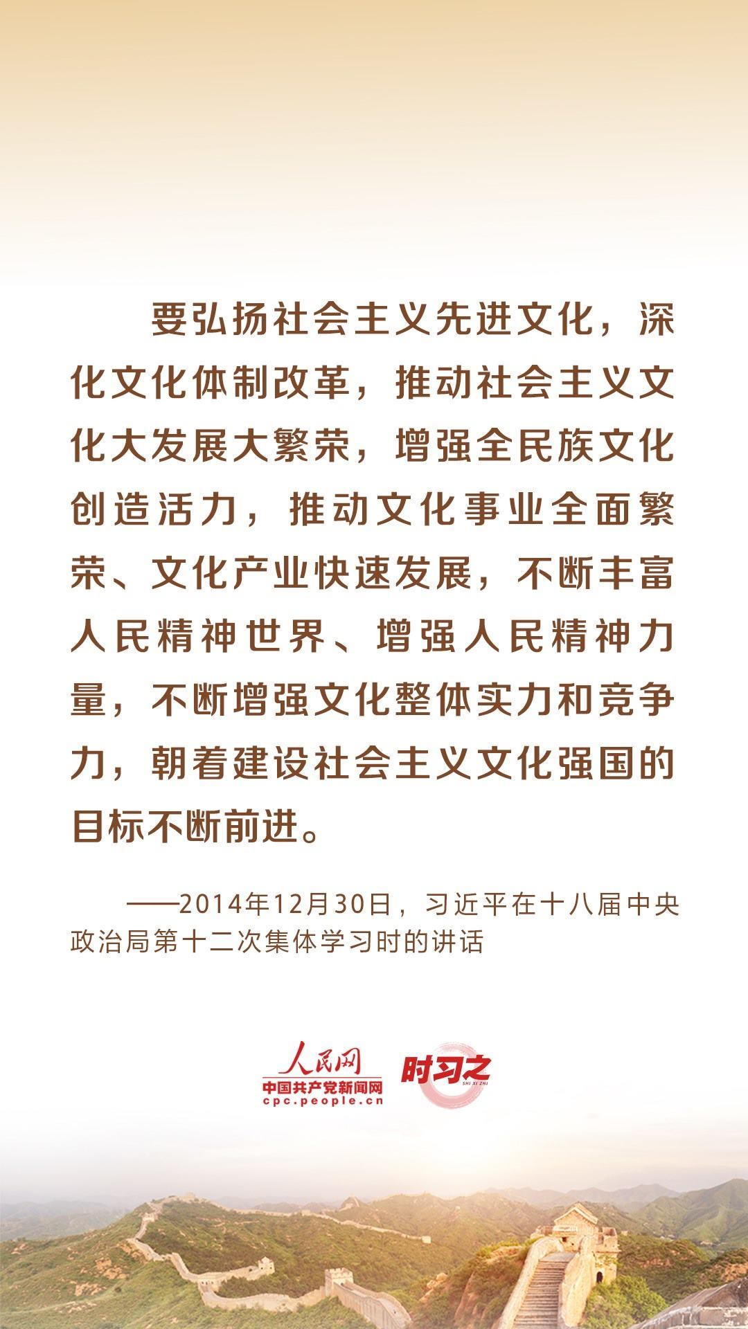 “理論自覺、文化自信,是一個民族進步的力量;價值先進、思想解放,是一個社會活力的來源?!秉h的十八大以來,習(xí)近平總書記就文化建設(shè)提出了一系列新理念新思想新戰(zhàn)略,引領(lǐng)中華文化創(chuàng)造性轉(zhuǎn)化、創(chuàng)新性發(fā)展。推動弘揚和發(fā)展社會主義先進文化,習(xí)近平多次作出重要闡釋。