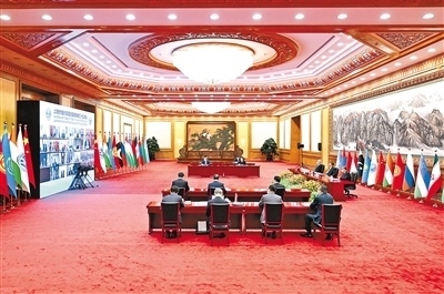 7月4日下午,國(guó)家主席習(xí)近平在北京以視頻方式出席上海合作組織成員國(guó)元首理事會(huì)第二十三次會(huì)議并發(fā)表題為《牢記初心使命 堅(jiān)持團(tuán)結(jié)協(xié)作 實(shí)現(xiàn)更大發(fā)展》的重要講話。新華社記者 李學(xué)仁攝