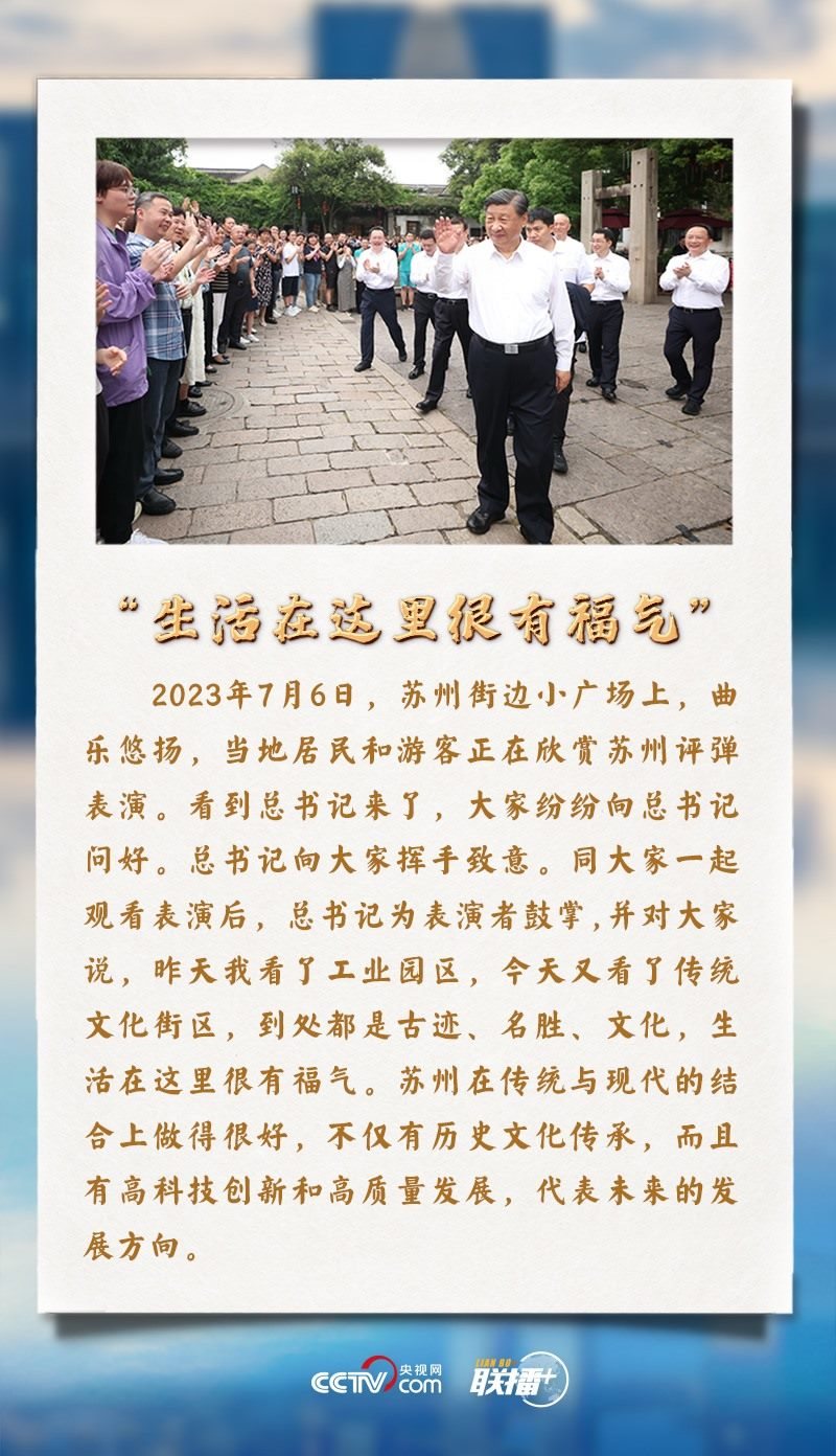 “昨天我看了工業(yè)園區(qū),今天又看了傳統(tǒng)文化街區(qū),到處都是古跡、名勝、文化,生活在這里很有福氣?!?月5日至7日,習(xí)近平總書(shū)記先后來(lái)到蘇州、南京等地考察調(diào)研。