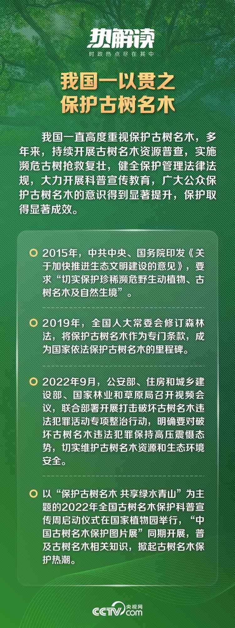 黨的十八大以來,以習(xí)近平同志為核心的黨中央高度重視古樹名木保護(hù)工作。