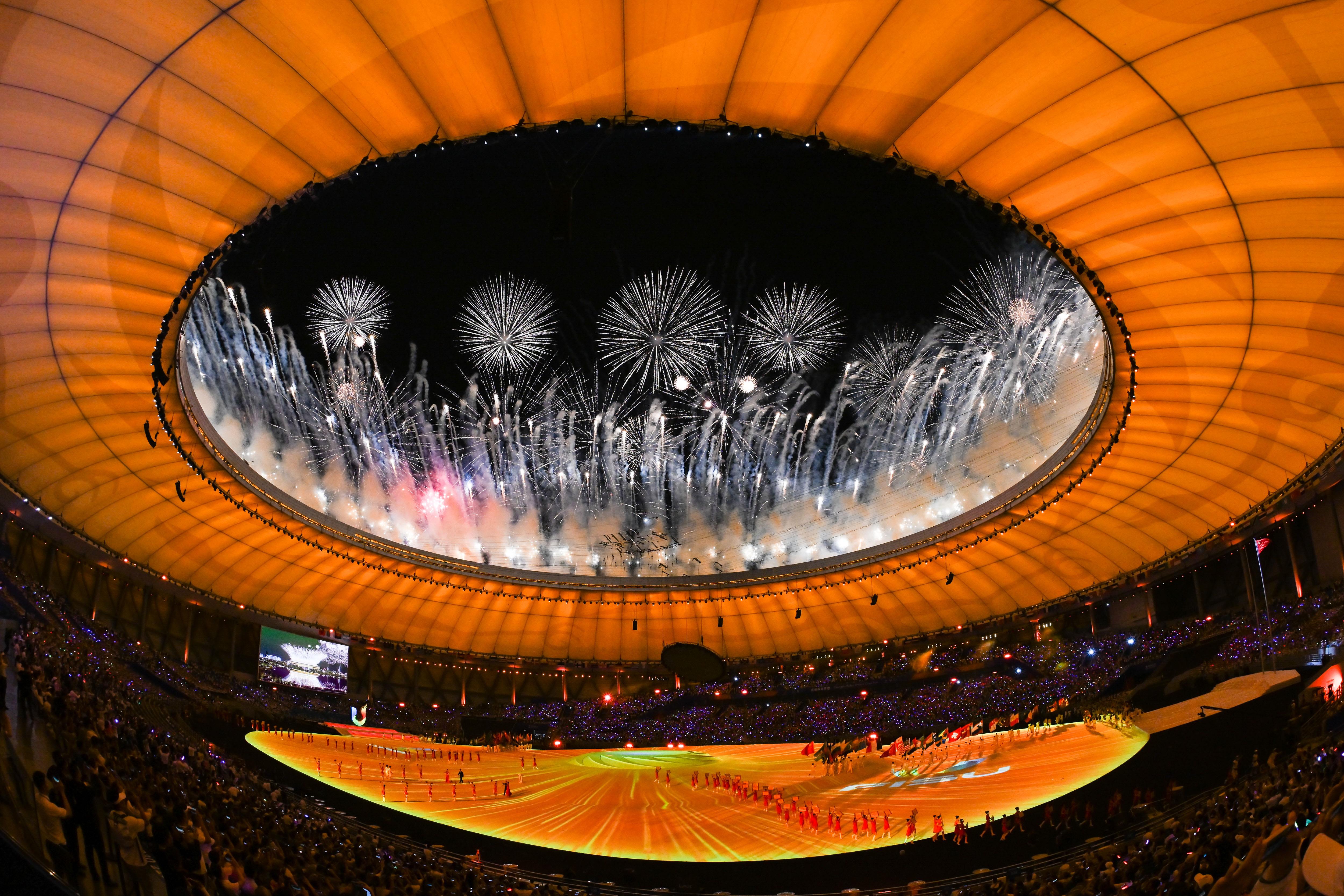 △2023年7月28日,成都大運(yùn)會(huì)開幕式上的煙花表演。