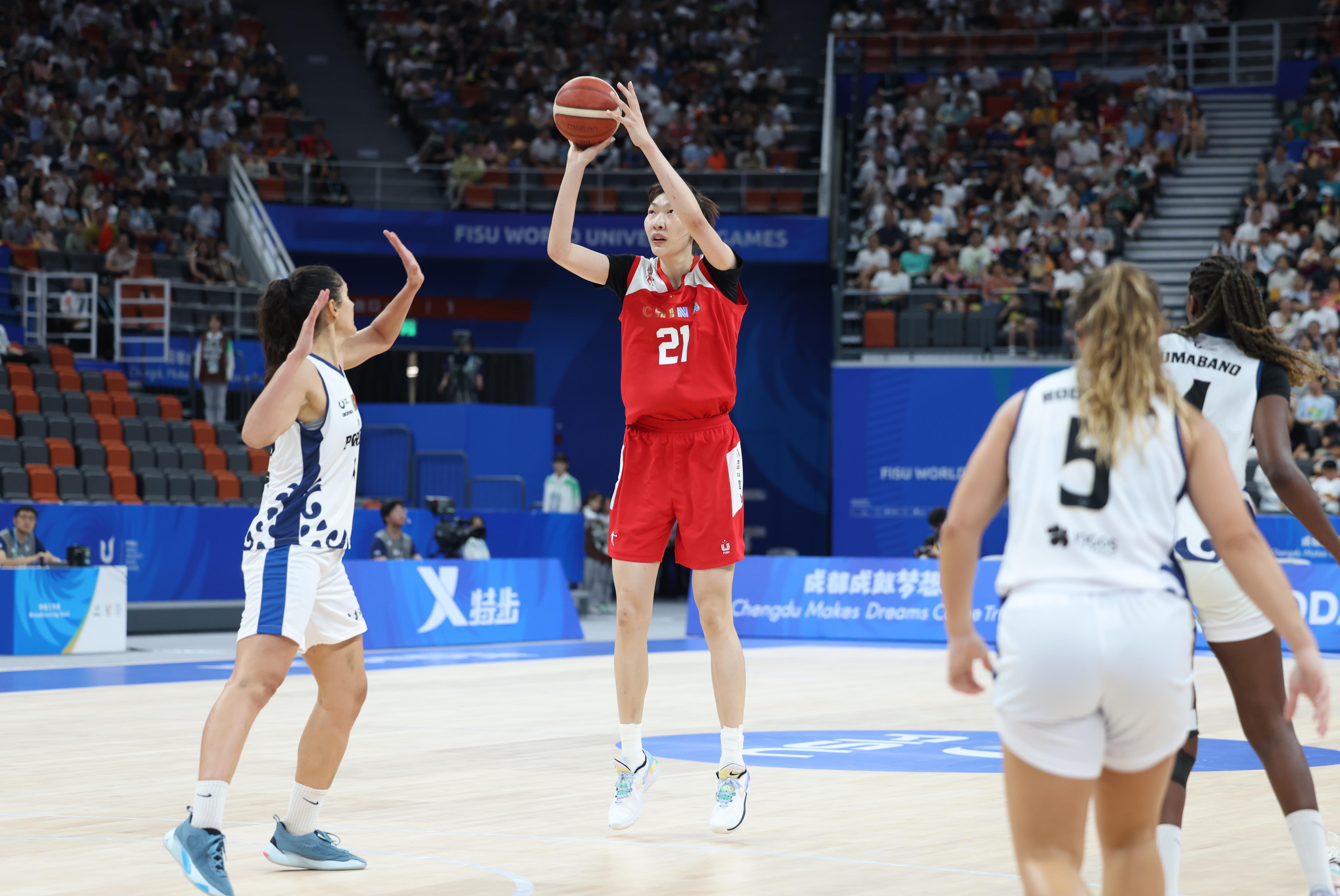 △2023年7月28日,在成都大運(yùn)會(huì)女籃小組賽中,中國(guó)大學(xué)生女籃戰(zhàn)勝葡萄牙大學(xué)生女籃。