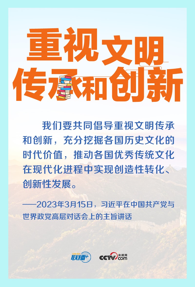 重視文明傳承和創(chuàng)新,是文明交流互鑒的動力源泉。2023年年初,習近平總書記在中國共產(chǎn)黨與世界政黨高層對話會上首次提出全球文明倡議,這是繼全球發(fā)展倡議、全球安全倡議后,新時代中國為國際社會提供的新的國際公共產(chǎn)品。