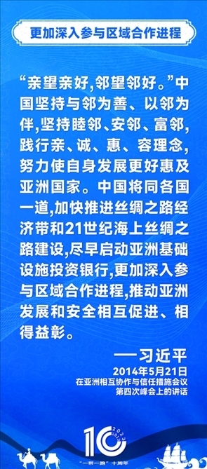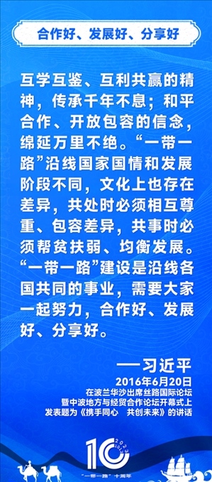 10年前,習(xí)近平主席提出共建“絲綢之路經(jīng)濟(jì)帶”和“21世紀(jì)海上絲綢之路”,即共建“一帶一路”倡議。過去10年來,習(xí)近平主席在多個(gè)場合發(fā)表講話和署名文章,為世界描繪了共建“一帶一路”互聯(lián)互通、合作共贏的宏偉藍(lán)圖。
