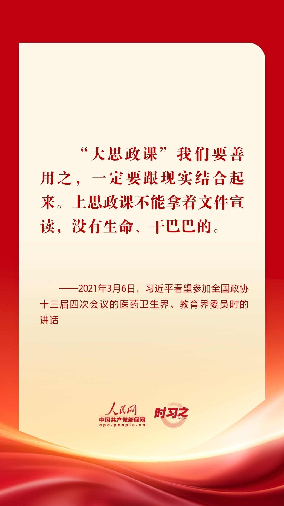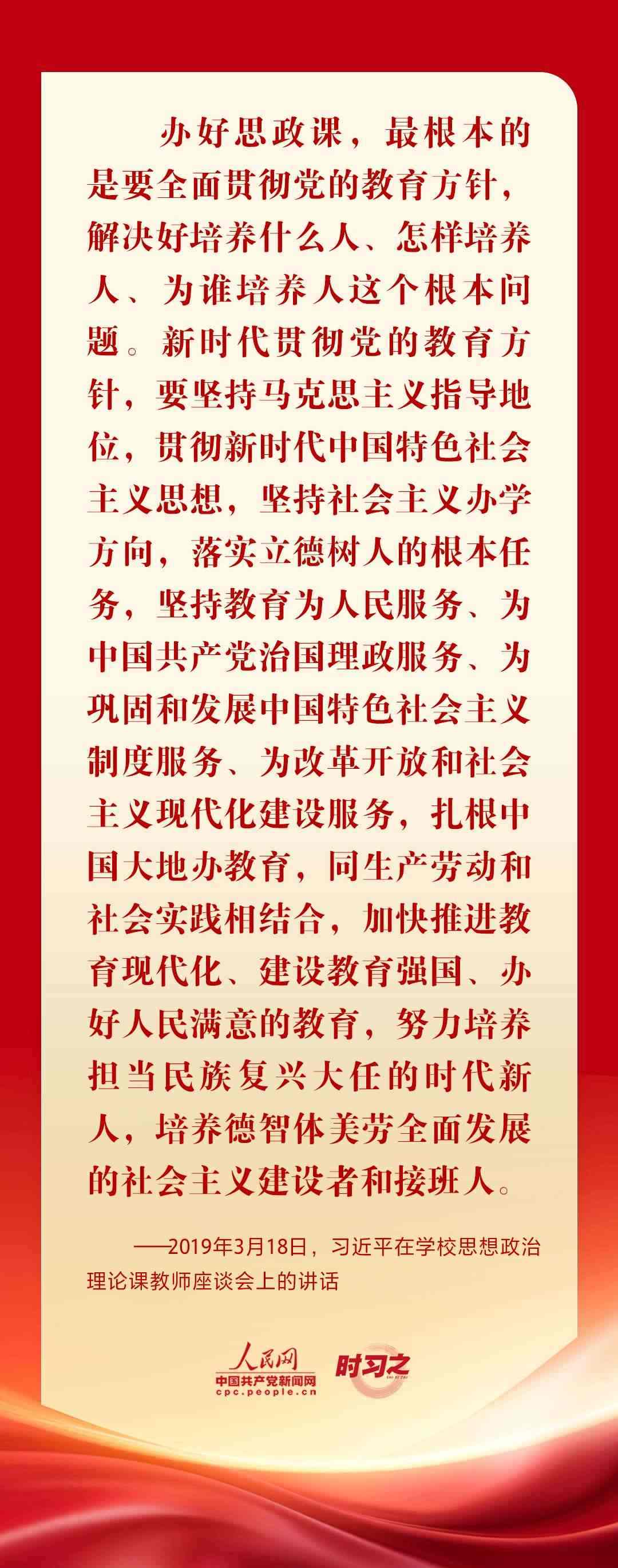 “思政課是落實立德樹人根本任務(wù)的關(guān)鍵課程,思政課作用不可替代,思政課教師隊伍責(zé)任重大?!秉h的十八大以來,從召開全國高校思想政治工作會議、全國教育大會、學(xué)校思想政治理論課教師座談會,到多次赴學(xué)??疾旌蛶熒涣髡勑模?xí)近平總書記圍繞思政課建設(shè)作出一系列重要論述,為辦好思政課提供根本遵循。