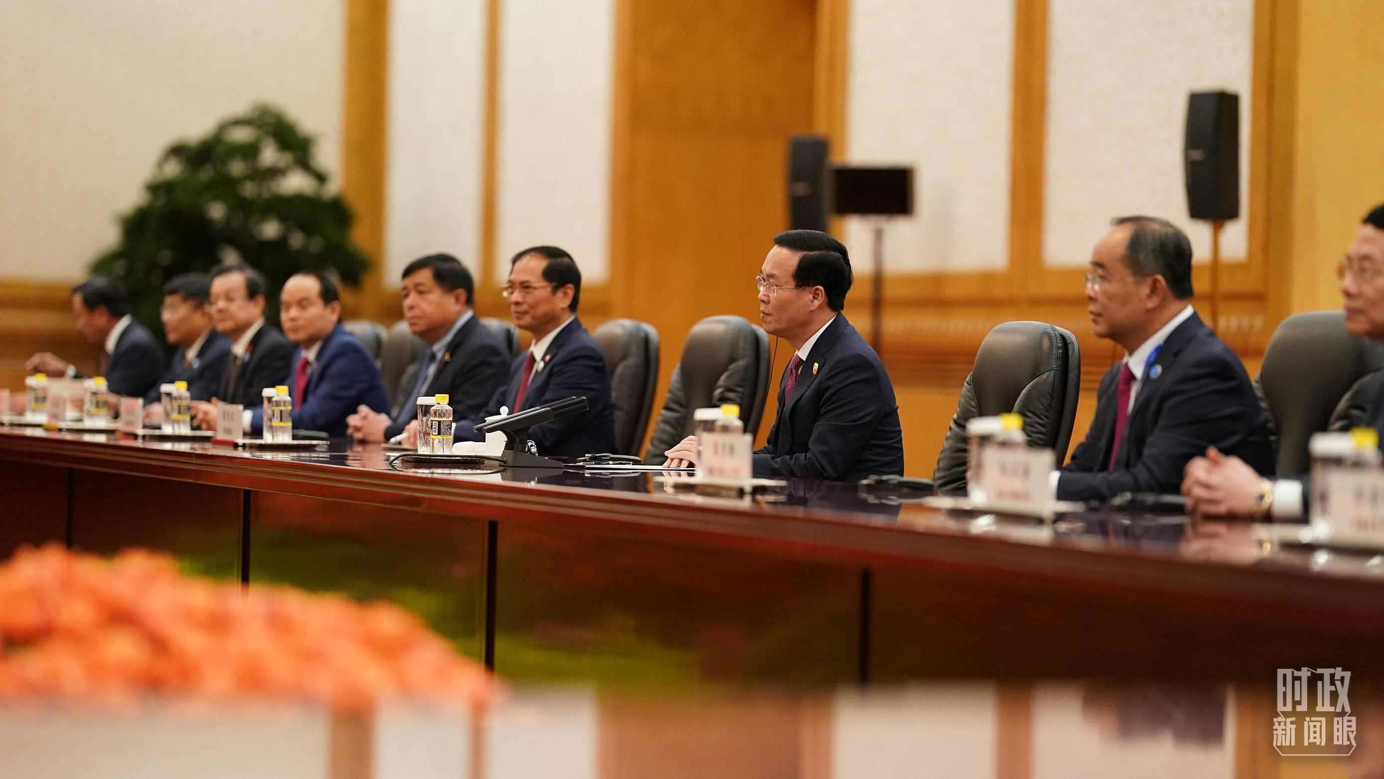 △中越兩國領導人會見現(xiàn)場。(總臺國廣記者李晉拍攝)