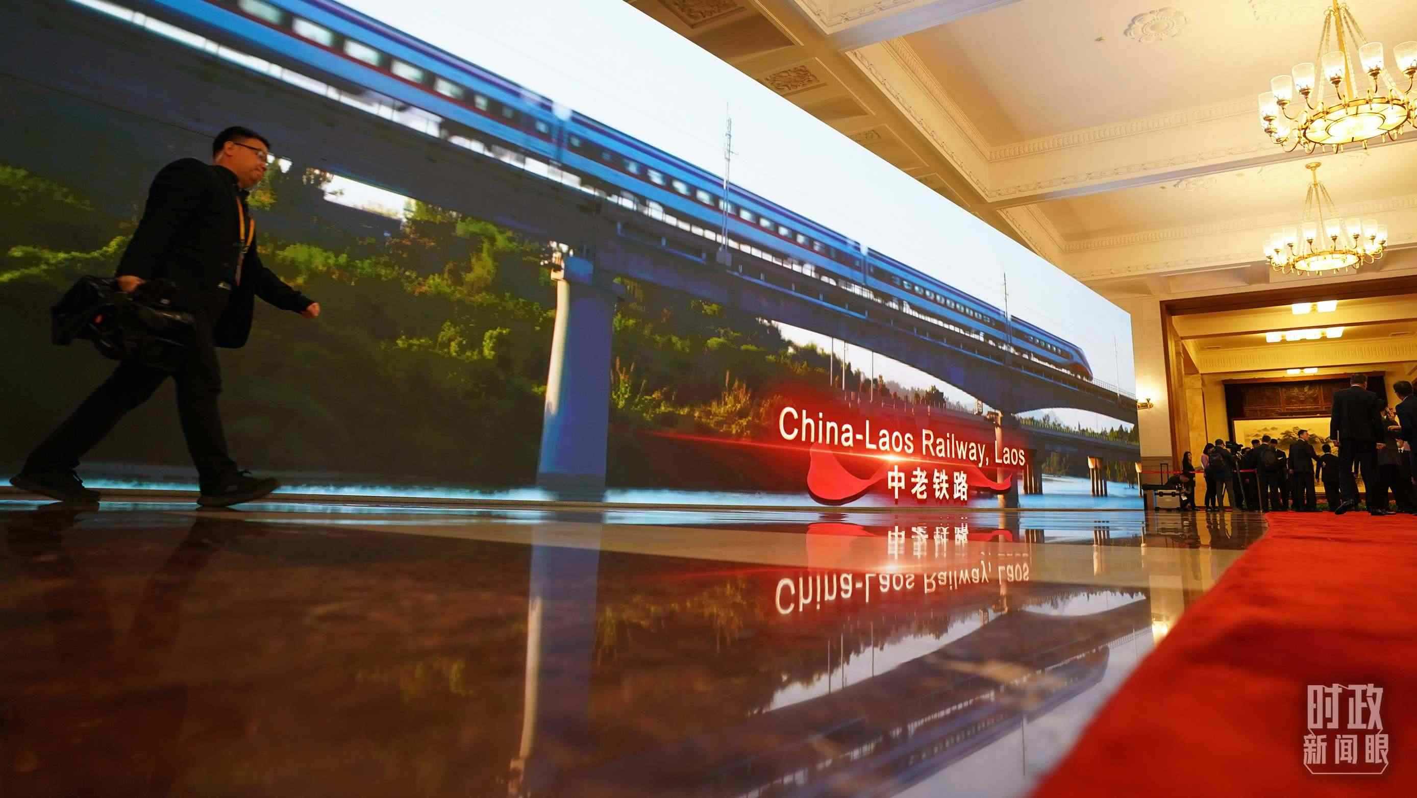 △人民大會堂內大屏幕展示共建“一帶一路”合作項目。(總臺國廣記者李晉拍攝)