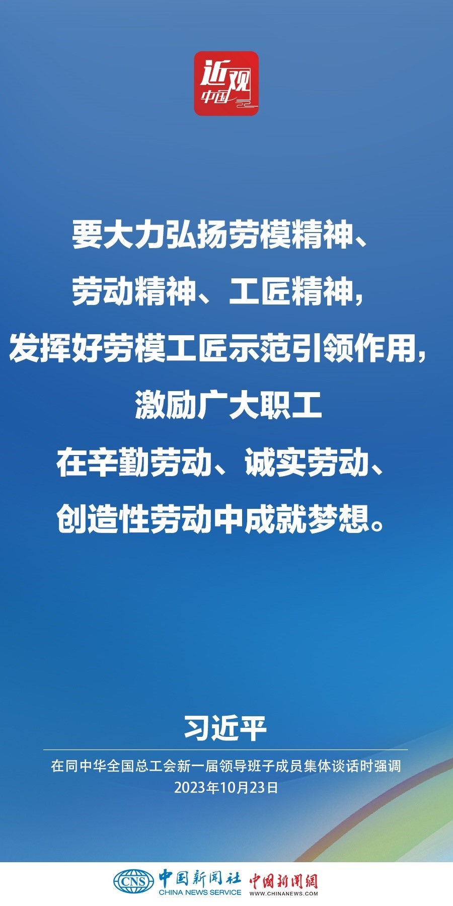 中共中央總書記、國家主席、中央軍委主席習近平23日下午在中南海同中華全國總工會新一屆領導班子成員集體談話并發(fā)表重要講話。他強調——