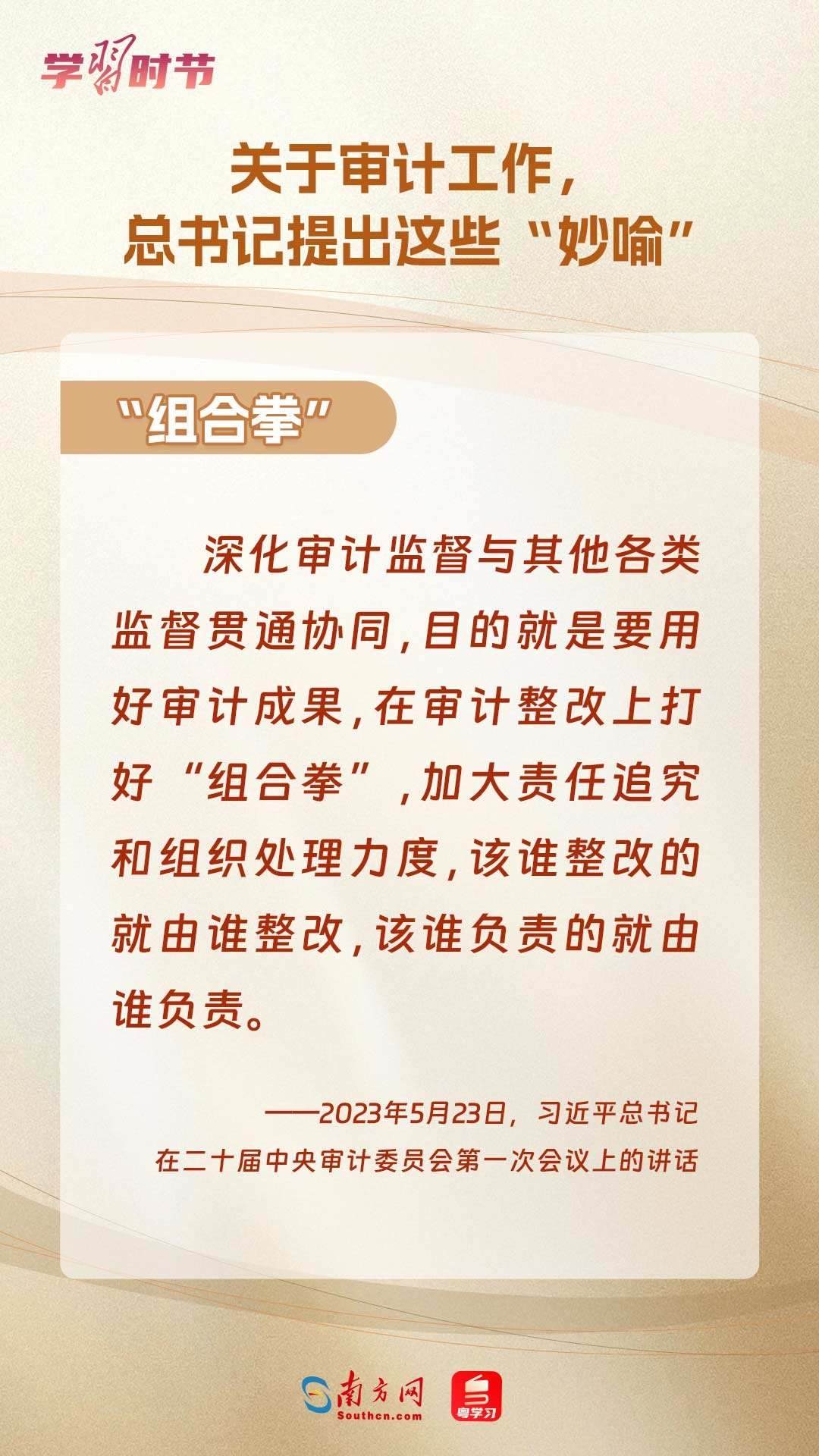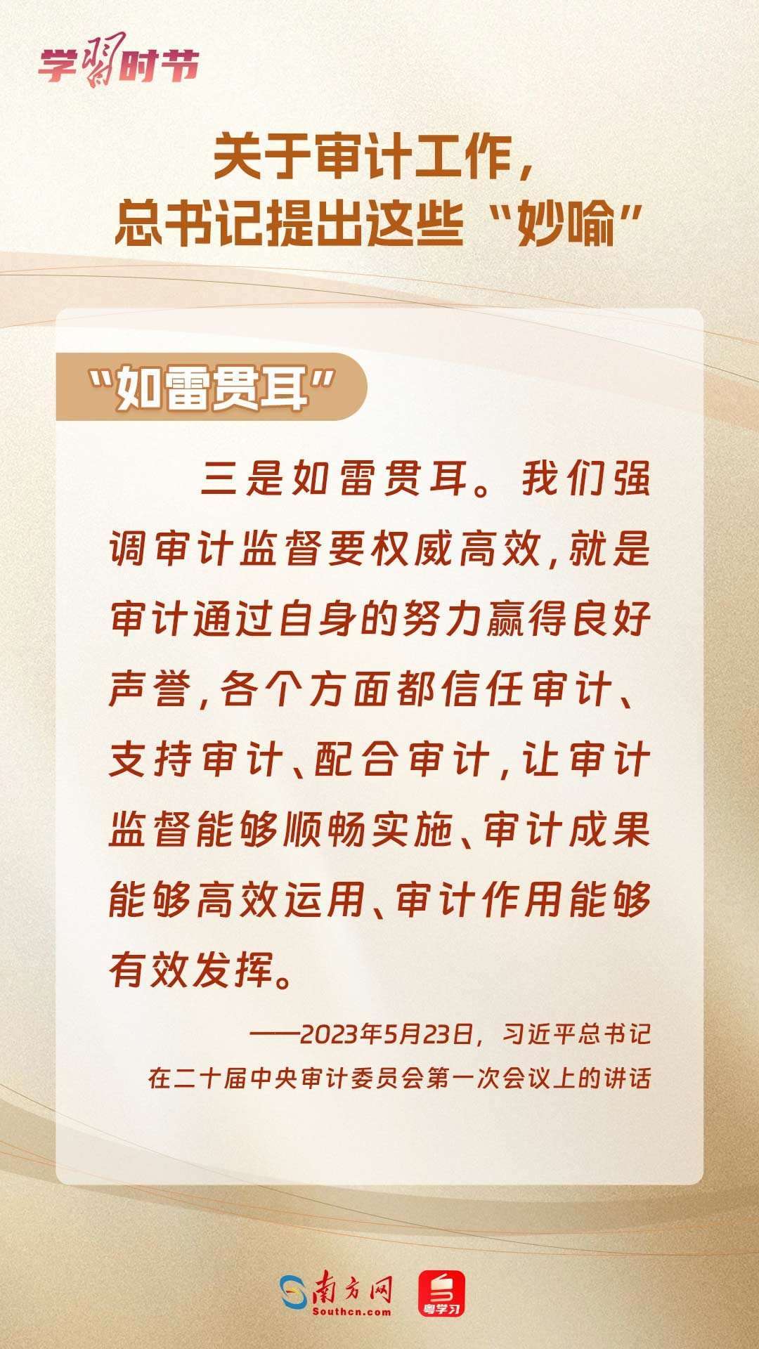 11月1日出版的《求是》雜志刊登了習(xí)近平總書記在二十屆中央審計(jì)委員會第一次會議上的講話全文。總書記在重要講話中“妙喻”審計(jì)工作,讓我們一同學(xué)習(xí)。