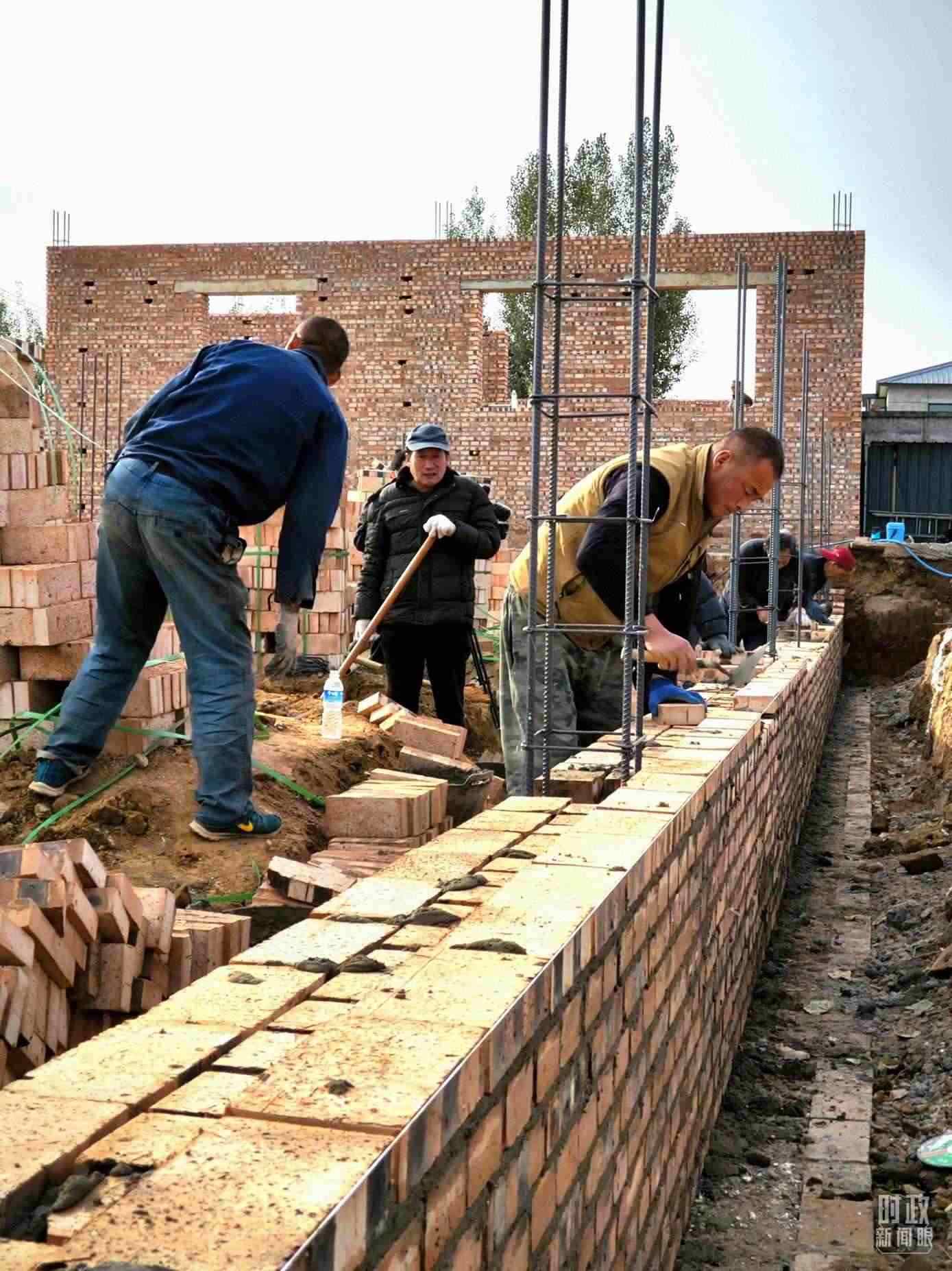 △ 刁窩鎮(zhèn)萬全莊村村民正在重建房屋。(總臺(tái)央視記者李輝拍攝)