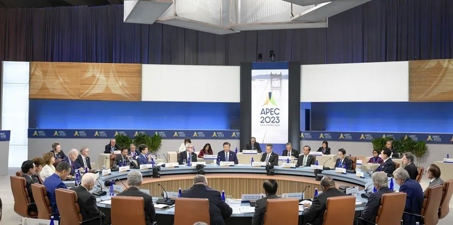 當(dāng)?shù)貢r(shí)間11月17日上午,亞太經(jīng)合組織第三十次領(lǐng)導(dǎo)人非正式會(huì)議在美國舊金山莫斯科尼中心舉行。國家主席習(xí)近平出席會(huì)議并發(fā)表題為《堅(jiān)守初心 團(tuán)結(jié)合作 攜手共促亞太高質(zhì)量增長》的重要講話。新華社記者 李學(xué)仁 攝
